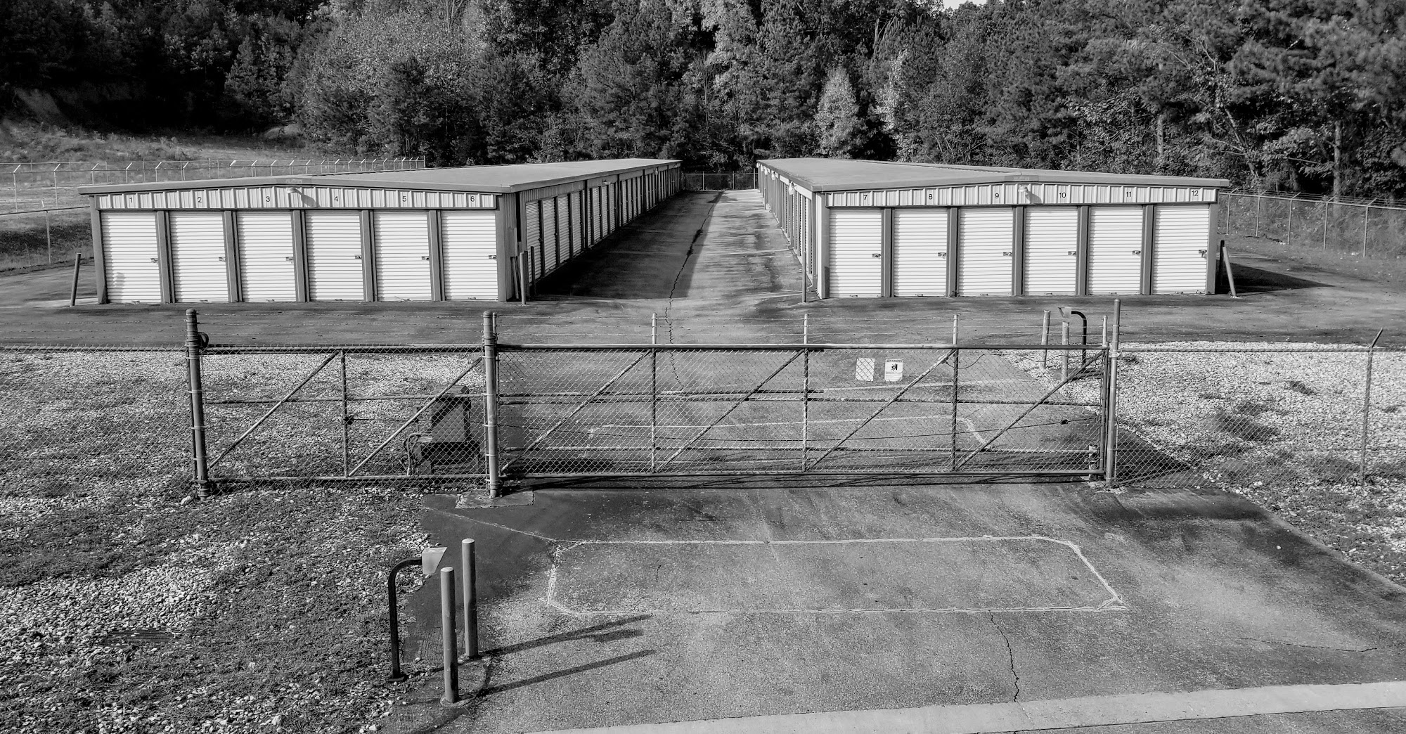 Secure self storage facility with secure pin-pad access to storage units and double gated RV/Boat storage facility with night flood lights