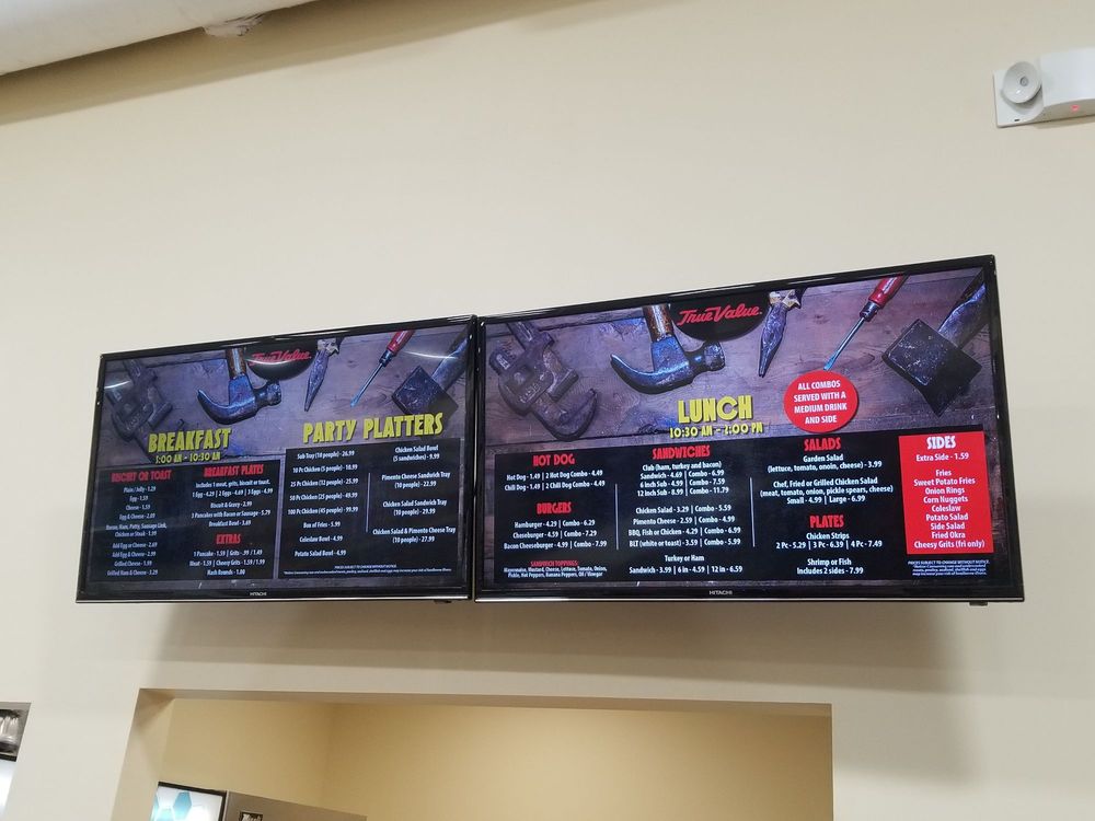 This is a great hardware store it serves lunch and breakfast and it has ice cream employees so nice and is a great place to get what you need