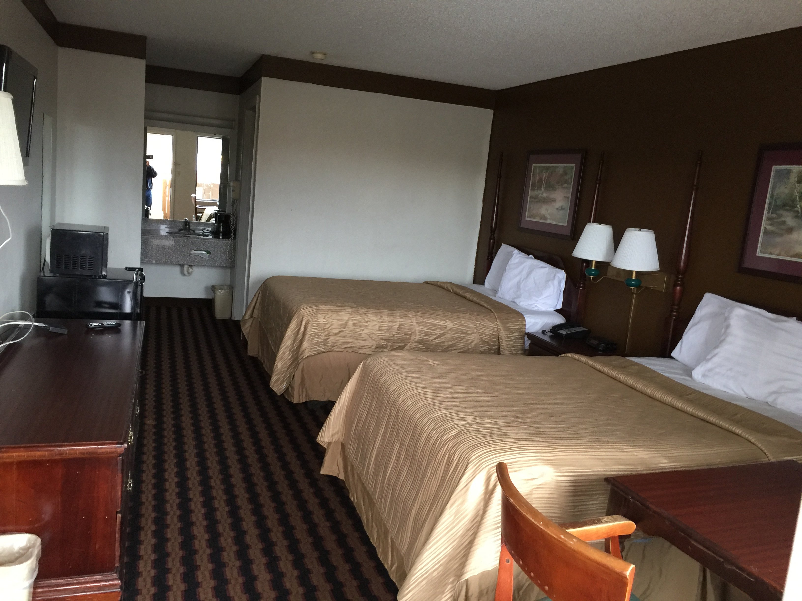There was roaches running around!!! The rooms are old and need refurbished, they did provide a small coffee pot but no filters, a good point for me was they do provide rooms for smoking and comfortable clean beds.Walkability: There was several places you could walk to for food and other things.