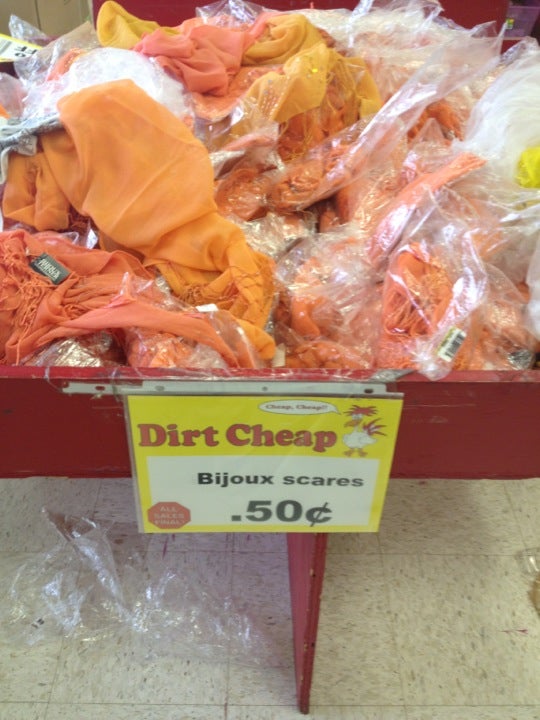 Dirt Cheap is a store with low prices and a good selection of a little bit of everything. The store looks great and is well maintained, with friendly and helpful staff. Customers note you can often ask for a discount at the register. Selection can vary and the store can be messy, but there are always good finds and great deals. Some report issues with the store being closed during advertised open times. Overall, it offers an easy shopping experience with excellent daily deals bins.
