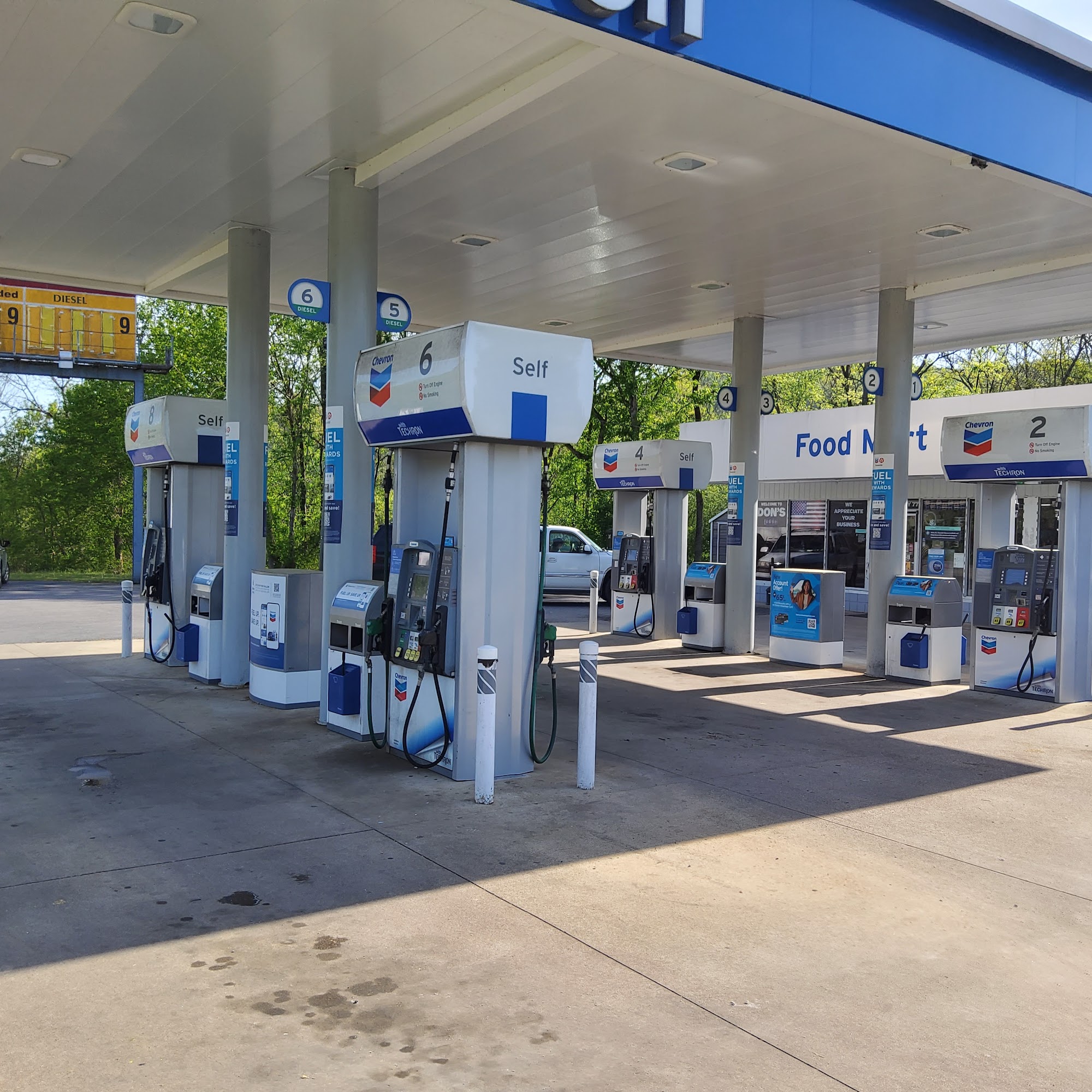 Chevron is a small town gas station that offers fuel, drinks, cigarettes and other items. Employees are friendly, courteous and helpful. The store is kept clean and stocked and the bathroom is kept the same. They frequent the store almost daily and recommend it to others. A lady in the store was extremely kind and outgoing, making visits enjoyable. The station is open late when other places are closed, providing everything that customers need. Prices are in line.