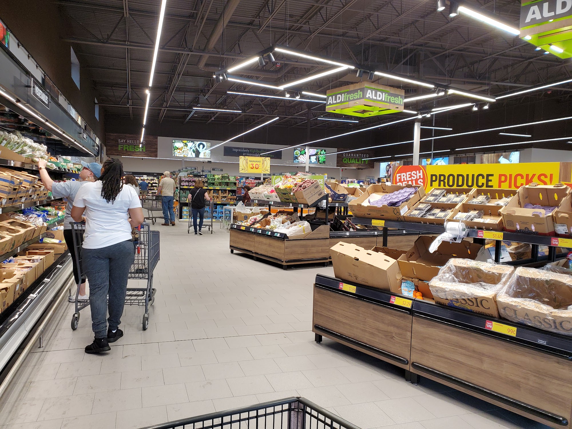 ALDI offers everyday low prices on quality groceries and home goods. The store is clean and mostly well stocked consistently. Their brand products are as good as name brand stuff, featuring great bread, produce, cheese, baking products, dairy and snack deals. Shoppers can find fresh meat and seafood, produce, pre-made deli items, baked goods, and frozen treats. The selection could be better, but the pricing is definitely great. Customers can walk out with affordable deals, often leaving with more than was on their list. The store provides self-checkout for a quick trip and offers online ordering for curbside pickup or delivery. ALDI also has home goods and limited-time items.