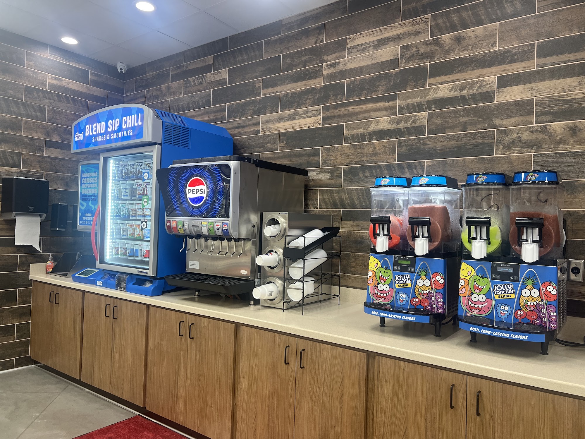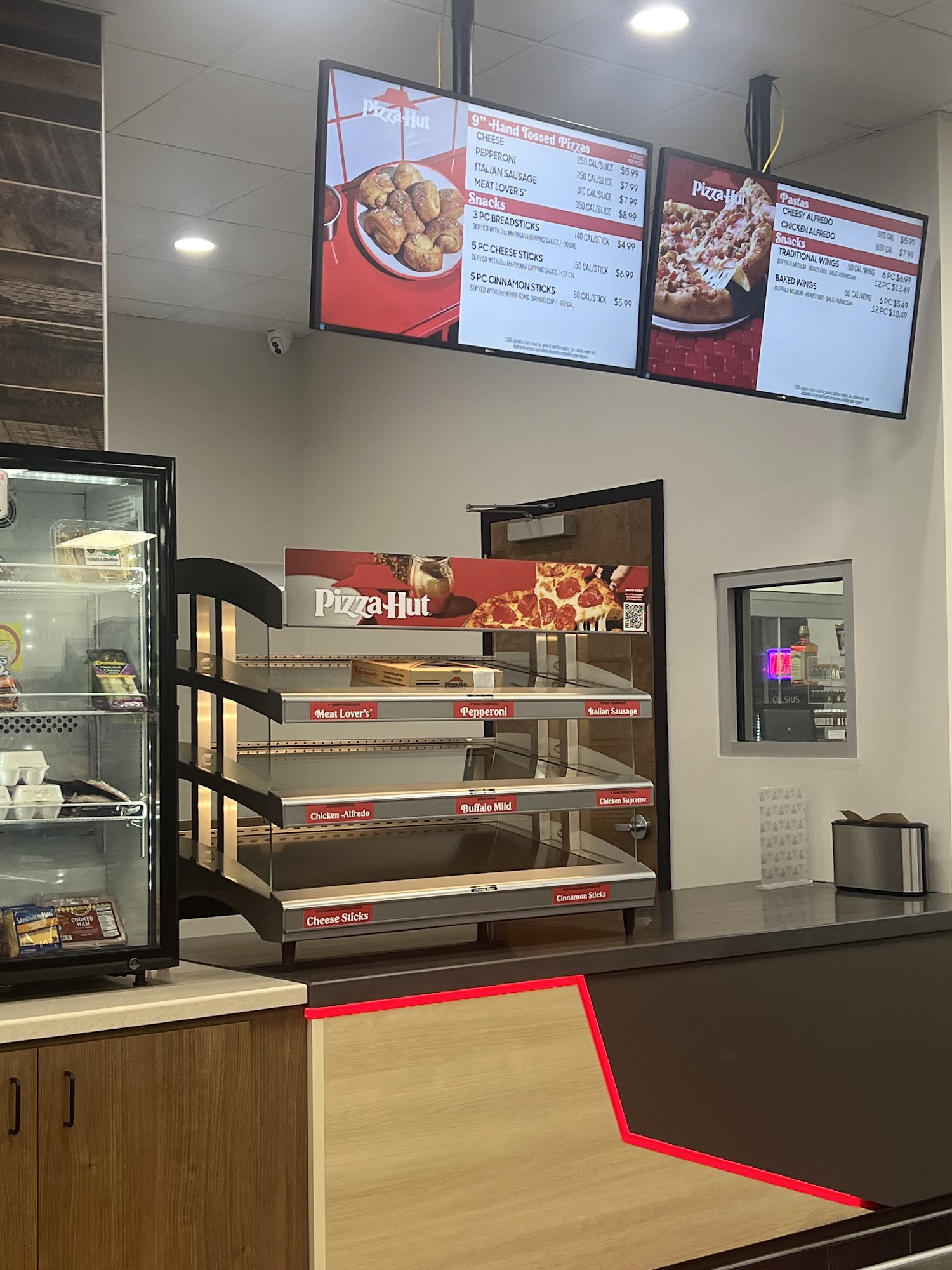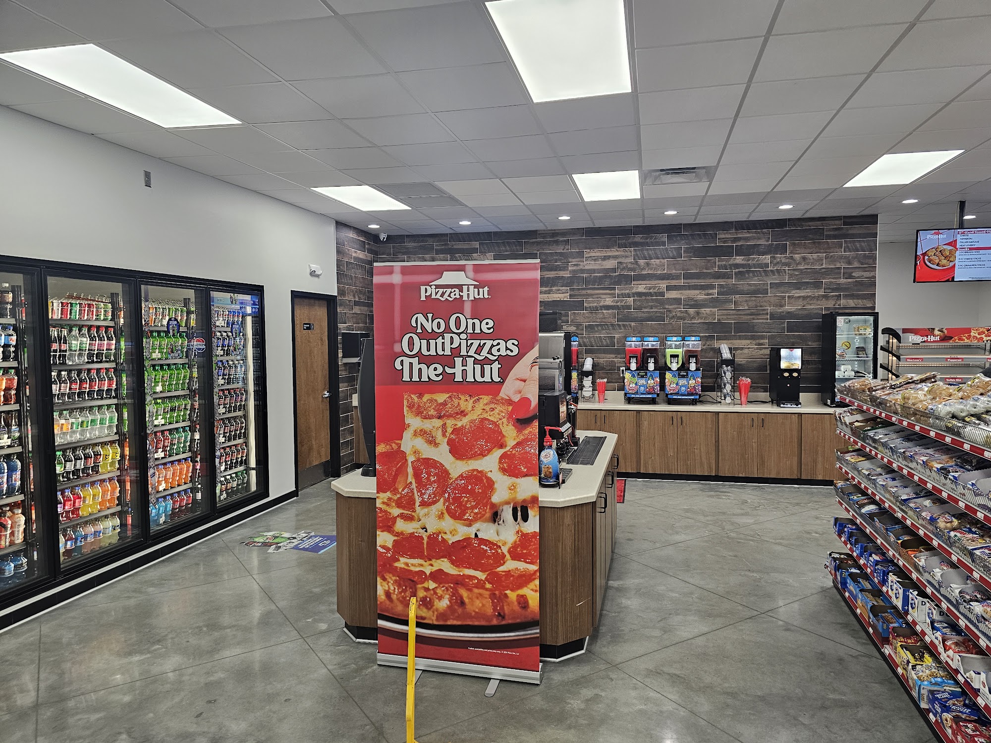 Good customer service. They have Pizza Hut pizza available and they have just added a Chester's fried chicken inside and well. We haven't tried fried chicken, but the pizza is very good. It's almost better than the pizza at the actual Pizza Hut restaurant.