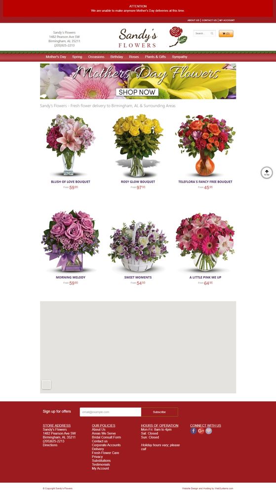 The flower arrangement that we bought for our Mom for Mother’s Day’s was beautiful and the customer service was excellent!