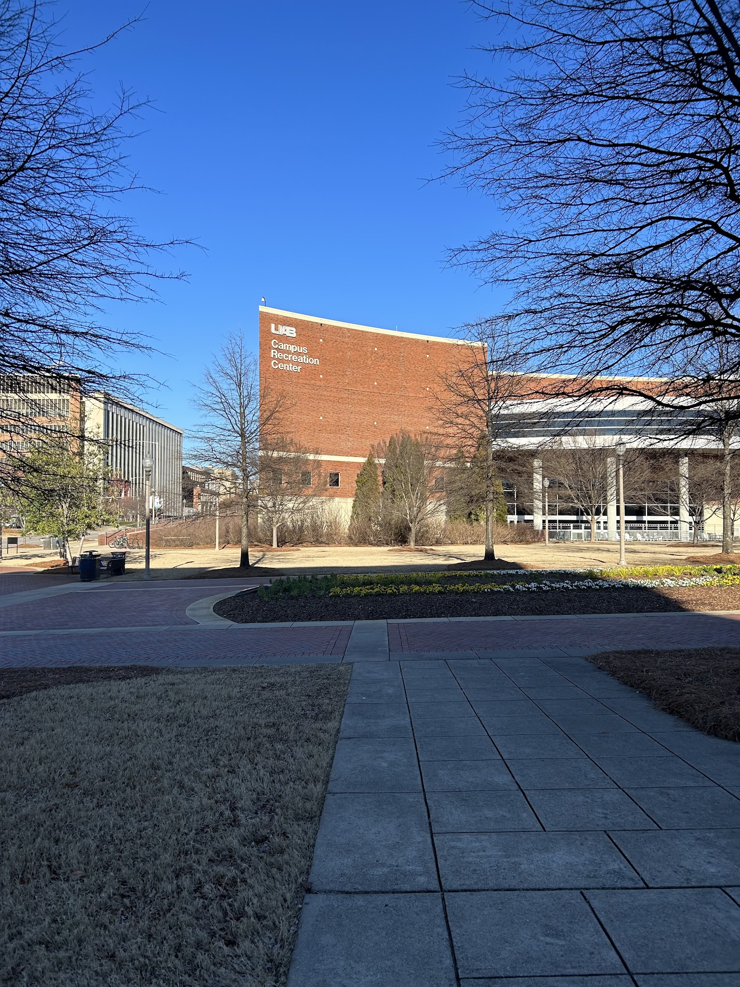 UAB Campus Green is a spacious, well-maintained, and clean park in the middle of UAB’s campus. It is a laid-back place for students and staff to enjoy nice weather, with beautiful seasonal flower arrangements and a great view. People go there for beautiful walks, to play casual sports, have picnics on benches, and set up booths for club activities. The grounds also host celebrations and events where groups meet to share stories and encouragement. It is dog-friendly, asking owners to pick up after their pets. Toilets are located inside nearby student buildings.