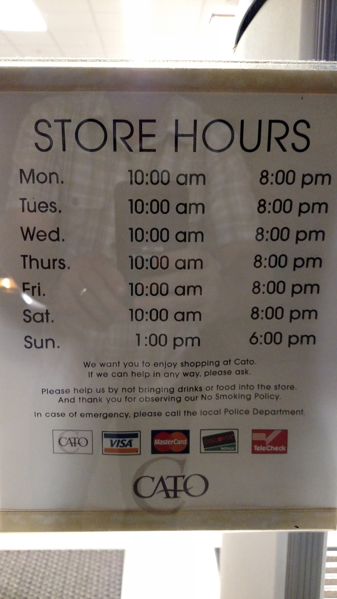 The ladies that work here are awesome. I love this store. It's clean everything is up in full view . Always a good variety. And the clerence racks are a must . And remember if it comes from Cato's and they don't have it in the store they will order it for you .♥️