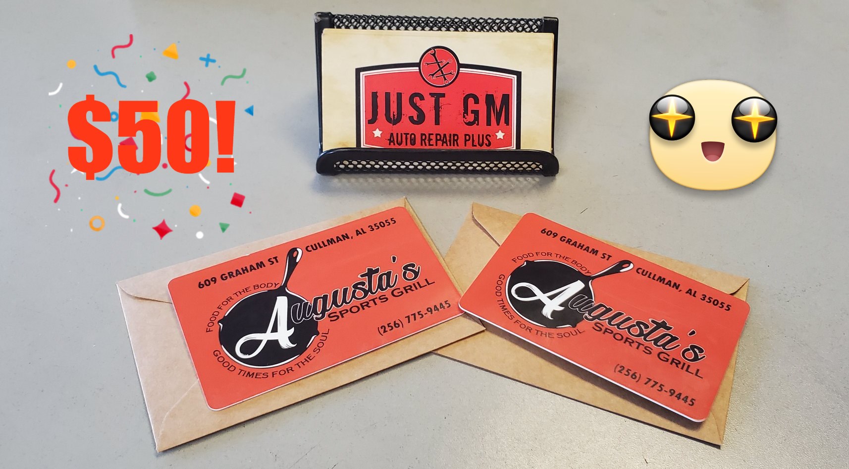 While driving thru on vacation we had some car troubles. Had to find an auto repair and chose Just GM. Omg glad we did. They were very friendly and got us right back on the road. We so appreciate you getting us squared away. Back to vacation. Thank you from KY