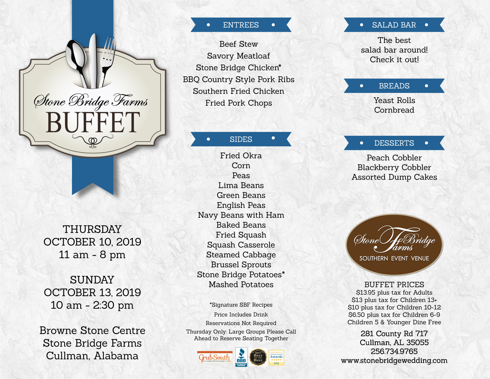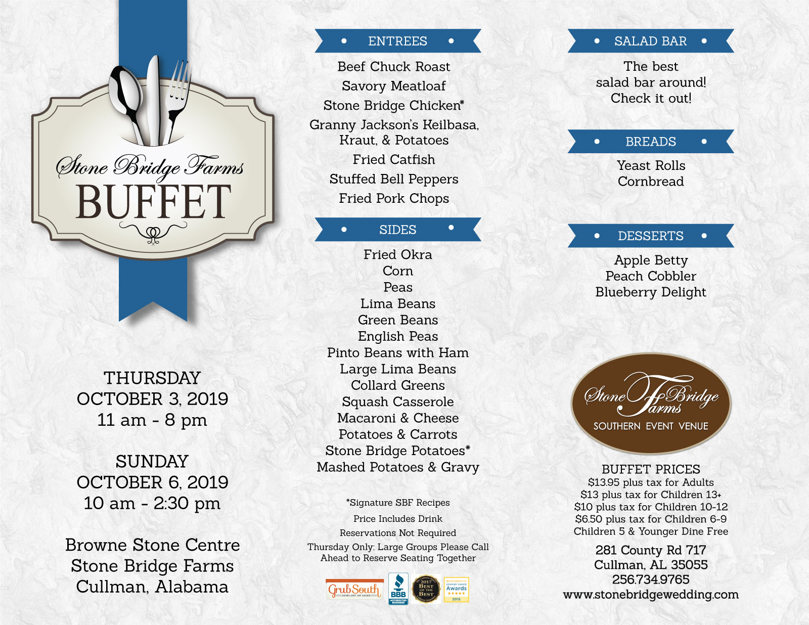 Stone Bridge Farms is a versatile and accommodating business that caters to a wide range of events and preferences. The food is consistently praised as delicious, with a variety of options to satisfy everyone. The price of the buffet, which includes tax, drink, salad, entree, and dessert, is considered a great value. The venue is described as large and comfortable, making it suitable for gatherings of all sizes. The staff is commended for their kindness, helpfulness, and attention to detail, ensuring that events, such as weddings, are executed flawlessly. Customers have expressed their satisfaction with the overall experience, with one reviewer even stating they would give 10 stars if possible. While the food may be on the richer side for some, the majority of reviews highlight the excellence of the cuisine and the exceptional service provided by the Stone Bridge Farms team.