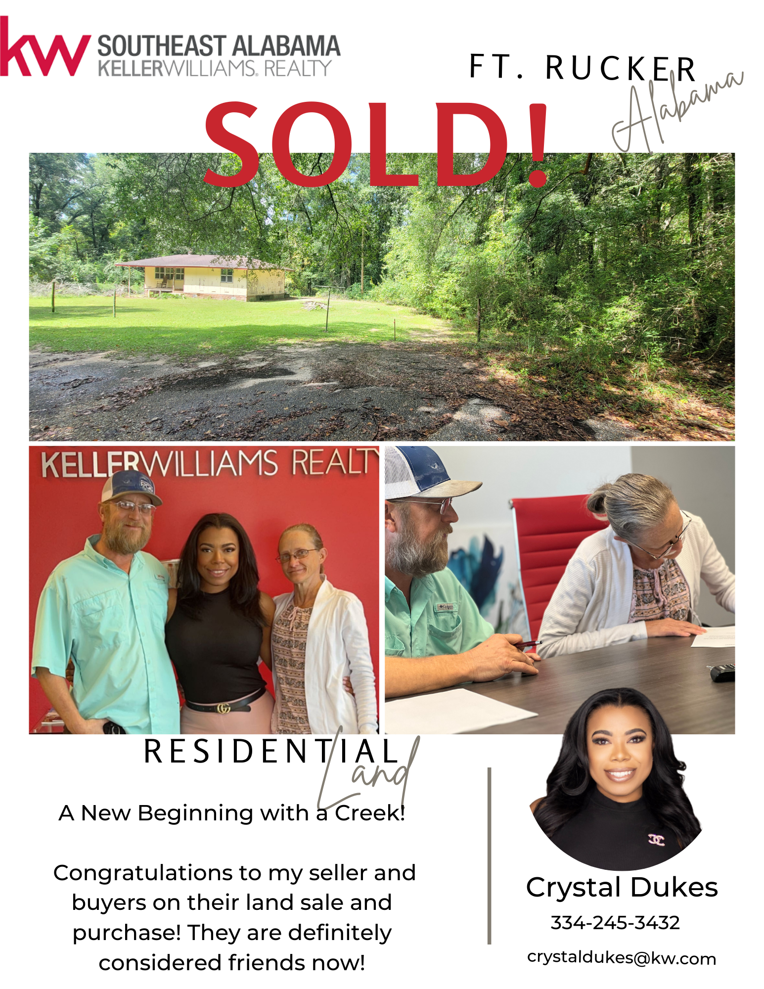 A real estate agent that is more passionate about customer care and solutions. Every home, piece of land, building and person has a story to tell. My job is to make sure that its the story you dreamed of. I get to work with every kind of real estate transaction; first-time homebuyers, investors, commercial, land, farm, new construction, luxury, vacation, military relocation, corporate relocation and so much rnore... No matter your need for real estate I am experienced in every aspect and I know how to get the results you want and need. I would love to earn your business. Servicing Sweet Home Alabama and the Sunshine State of Florida! What are you waiting for?? Call me 334-245-3432 or 850-704-9406