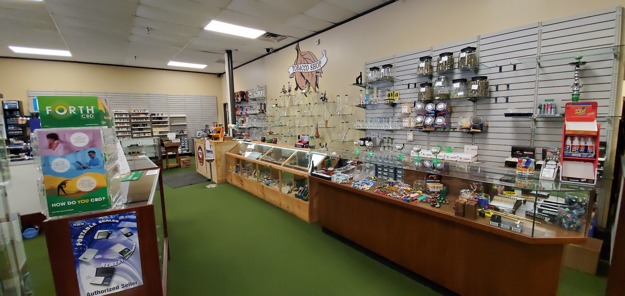 A nice place with a large selection for your smoking needs. Reminded me of a big head shop in the old days. They have a selection of cigars, cigarettes, Tobacco and accessories. People are welcoming and friendly