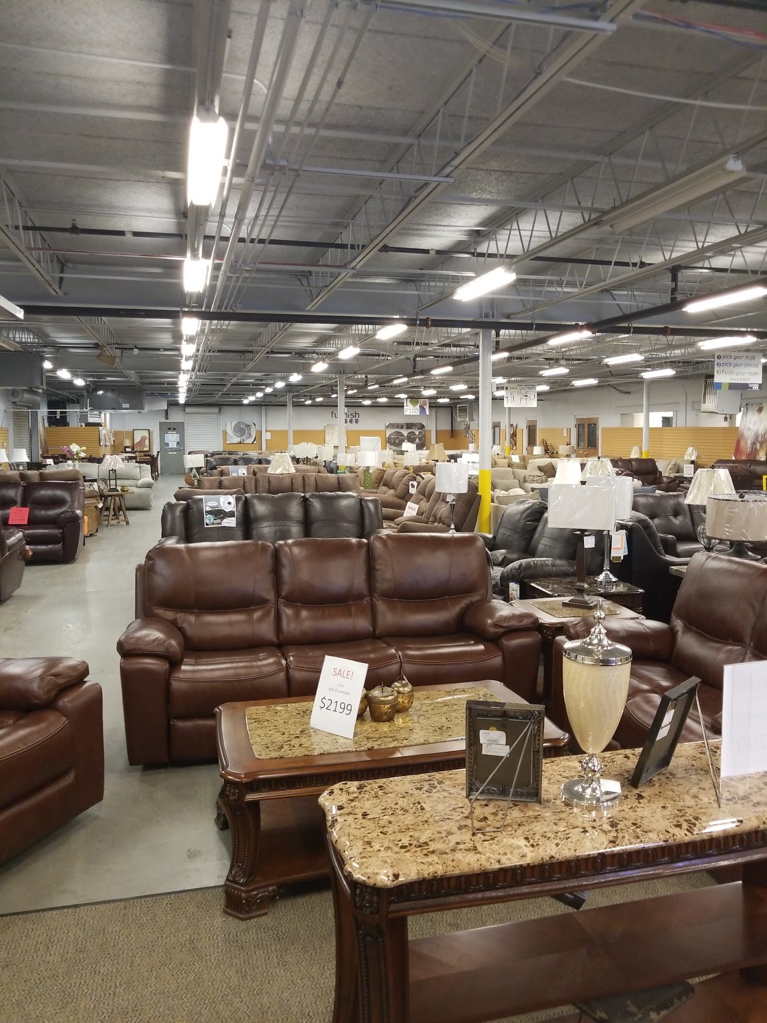 Friendly staff, organized, great selection. Ashley furniture. Third party delivery kind of high$. Bring your muscle and a truck/trailer and save delivery cost. One perk, no sales tax!!!