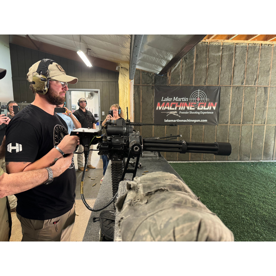Lake Martin Machine Gun is a shooting range where staff are remarkably friendly, kind, patient, knowledgeable, professional, and focused on safety. They foster a welcoming environment with an amazing and helpful atmosphere. The business offers an awesome and great variety of guns, with probably 30 different firearms to shoot, from automatic pistols to unique weapons like the famous Minigun and historic replicas. Customers can go in empty handed and lease firearms to try before they buy. While ammo prices are a little up there, there is a great variety, often packed themselves. The facility is very clean with a great setup. It is highly recommended as an absolutely amazing place for a first experience or a great time, earning repeat business as a must-stop destination.