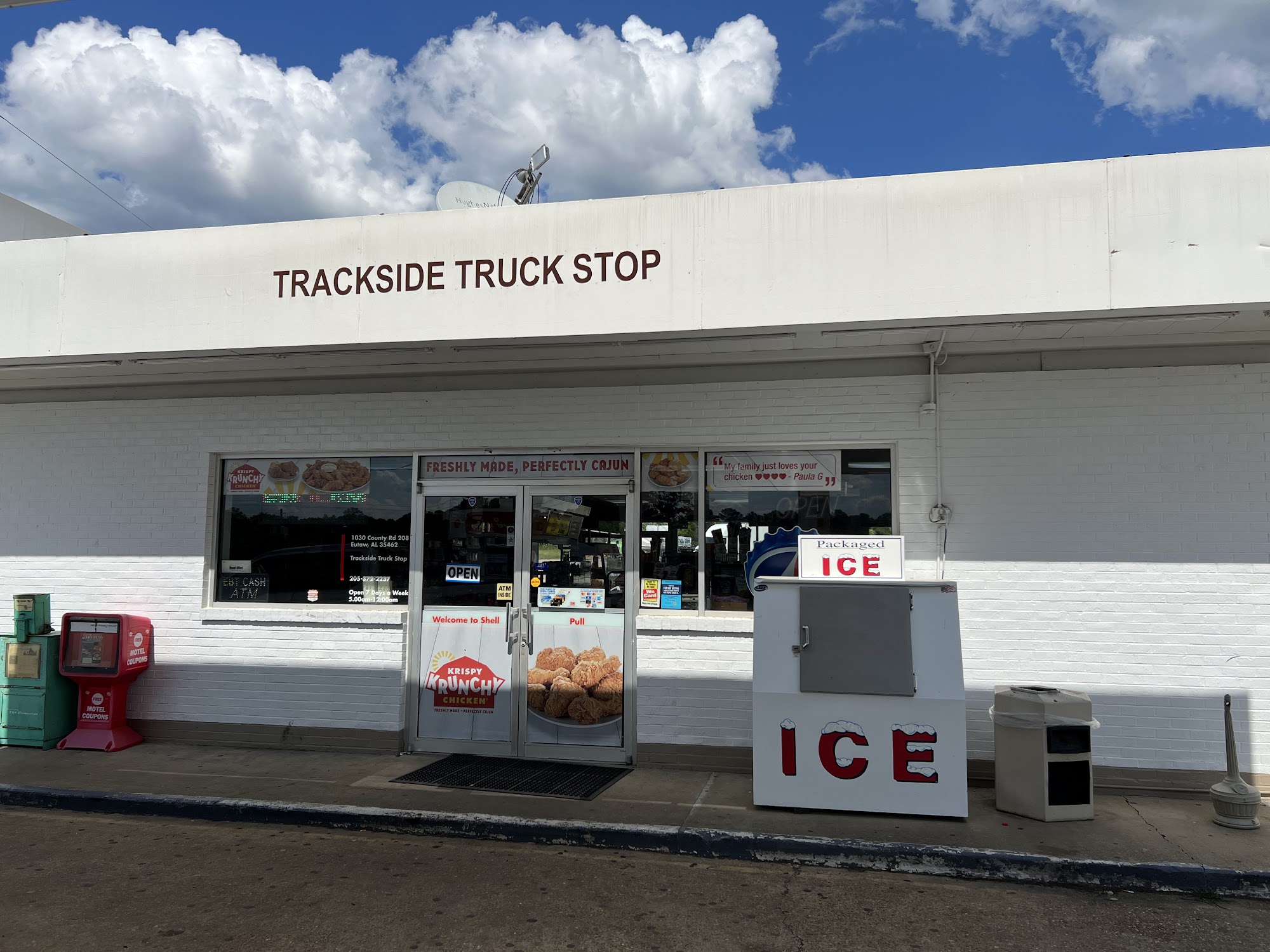 Trackside Truck Stop is a small-town Shell gas station with plenty of parking, though the lot is somewhat rough. It features hot, delicious food, including fried chicken, wedges, and jolepenio poppers, all at good prices. The staff are friendly and honest, exemplified by a helpful employee who ensured customers received their change after an accidental overpayment. The truck stop offers basic amenities like diesel pumps, but no showers or 24-hour service are available. While the bathroom can be unclean and some pumps out of order, the welcoming staff and tasty food make it a decent stop for travelers.