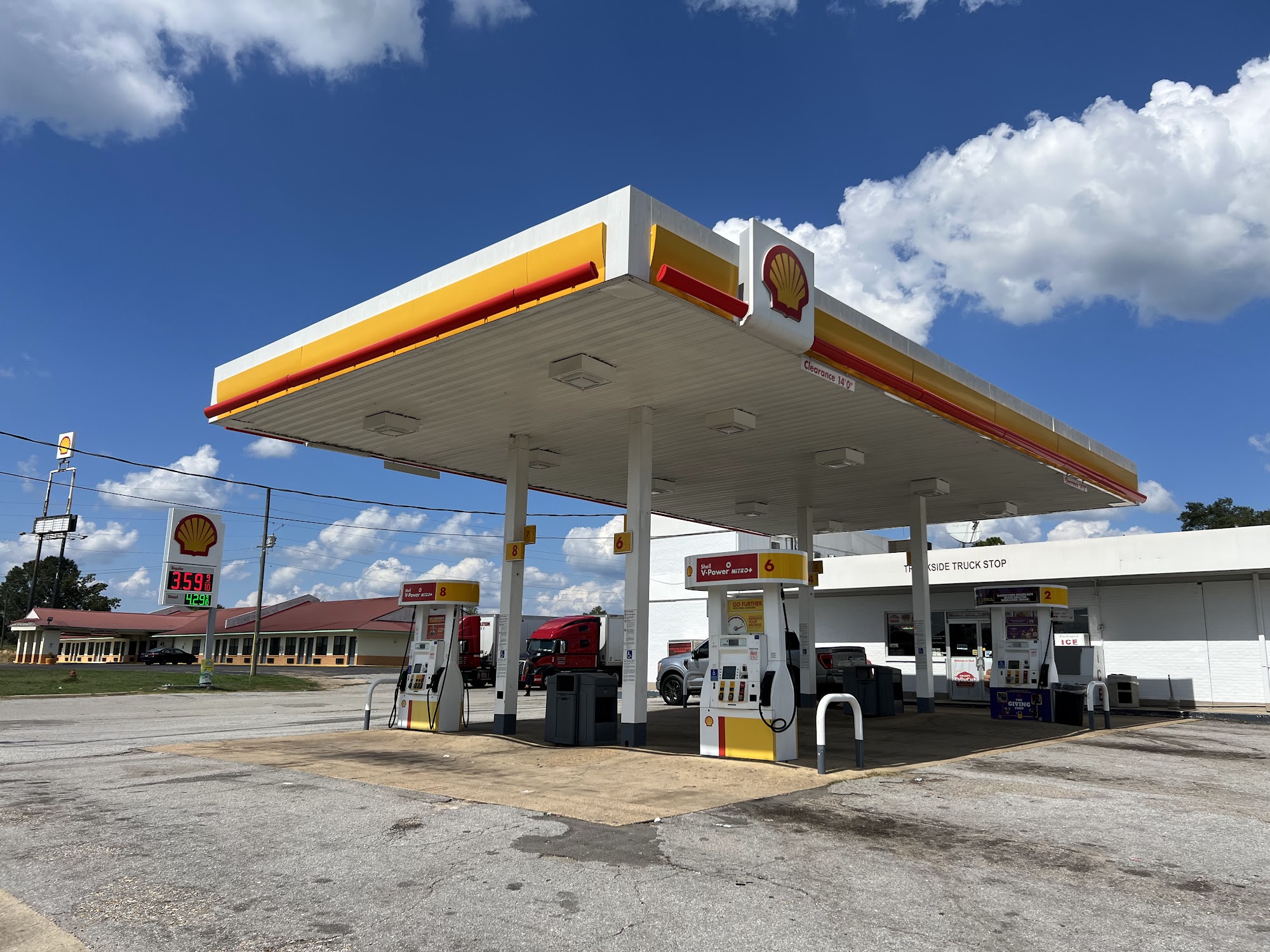 The truck stop is a shell , gas station. And they have hot food, and it is delicious. We had fried chicken, wedges, and jolepenio poppers. The price is good, and we accidentally overpaid and walked out. We went back to get water, and the man behind the counter made sure he gave us our change. That's honest.
