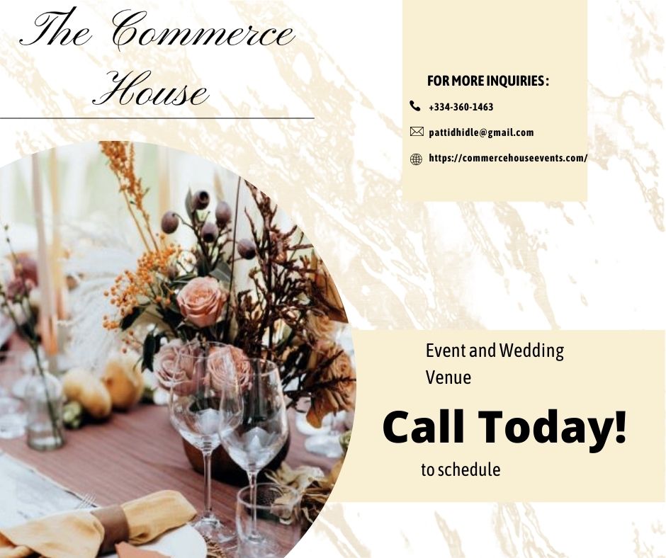 We're The Commerce House, a premier event venue located here in historic downtown Geneva, AL. This 3000-square foot historic building was built in 1935 and was initially built as a dwelling in the early 1900s. We've turned it into a charming event venue that's equipped with a kitchen, a carriage house, tables, and chairs. As a locally-owned business, we are proud to offer great service to our clients while providing a beautiful venue to host special moments and gatherings. Let us do all the work while you relax and enjoy your party. Our staff will be happy to assist you in planning all of the details. We’re looking forward to partnering with Geneva and the surrounding areas. We'd like to personally invite you to make an appointment.