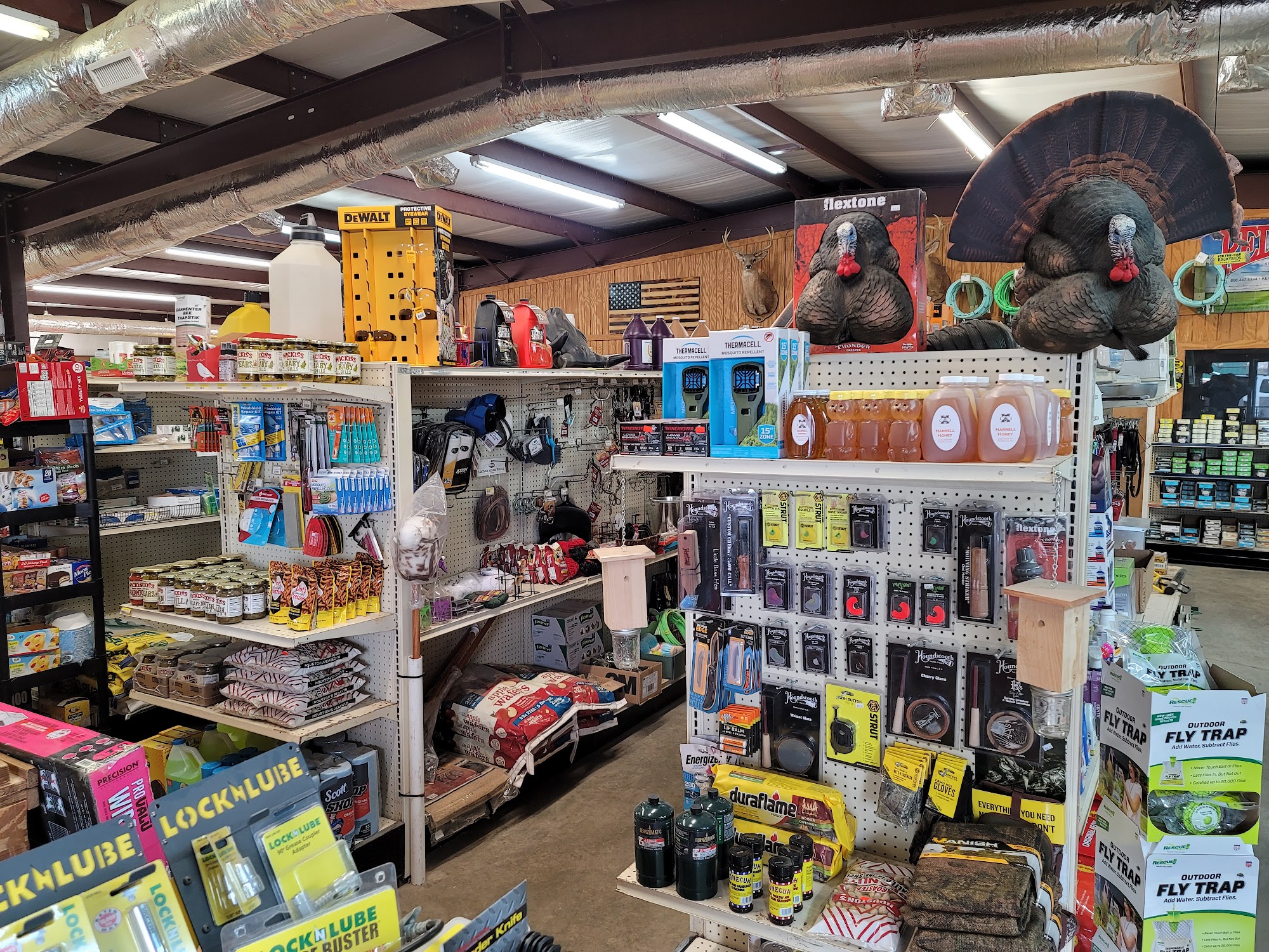 I get all my feed and farm supplies at Casey's. They also carry Southern Sweet Bee honey and scented candles, Hardin's Seasoning, and Conecuh sausage.