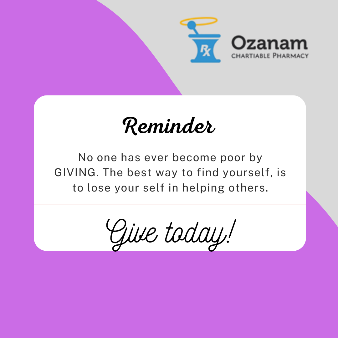 I want to thank everyone at ozanam charitable pharmacy. I received the medication that I needed and was treated with respect. May God bless each and everyone of you. Thank you so much