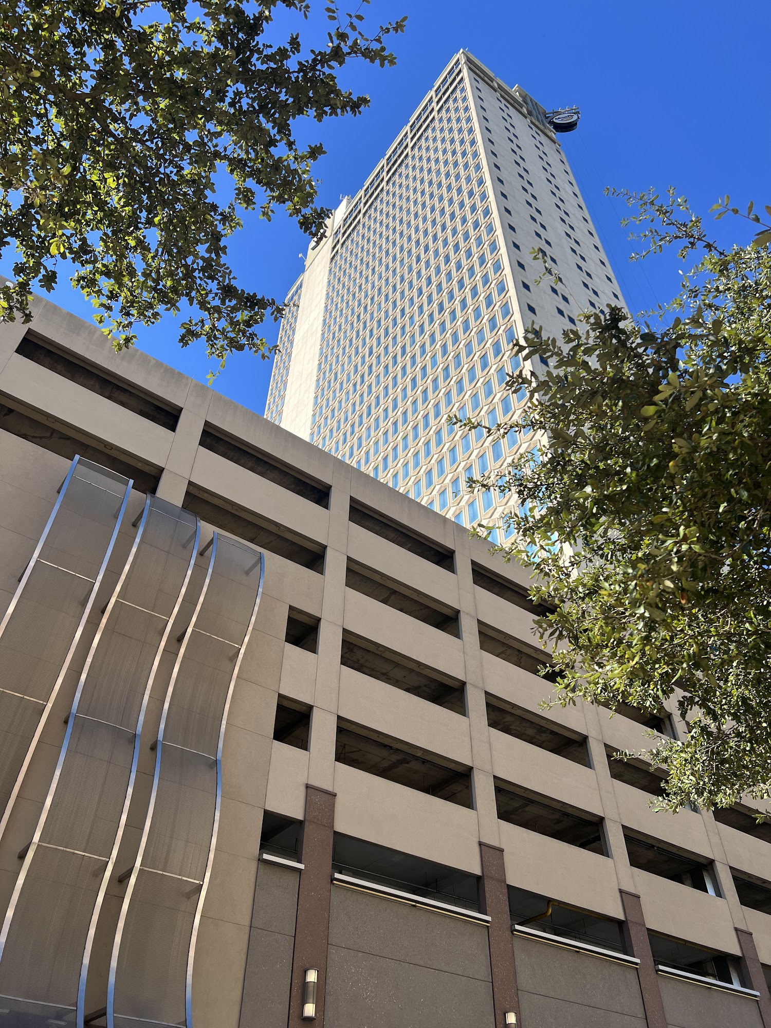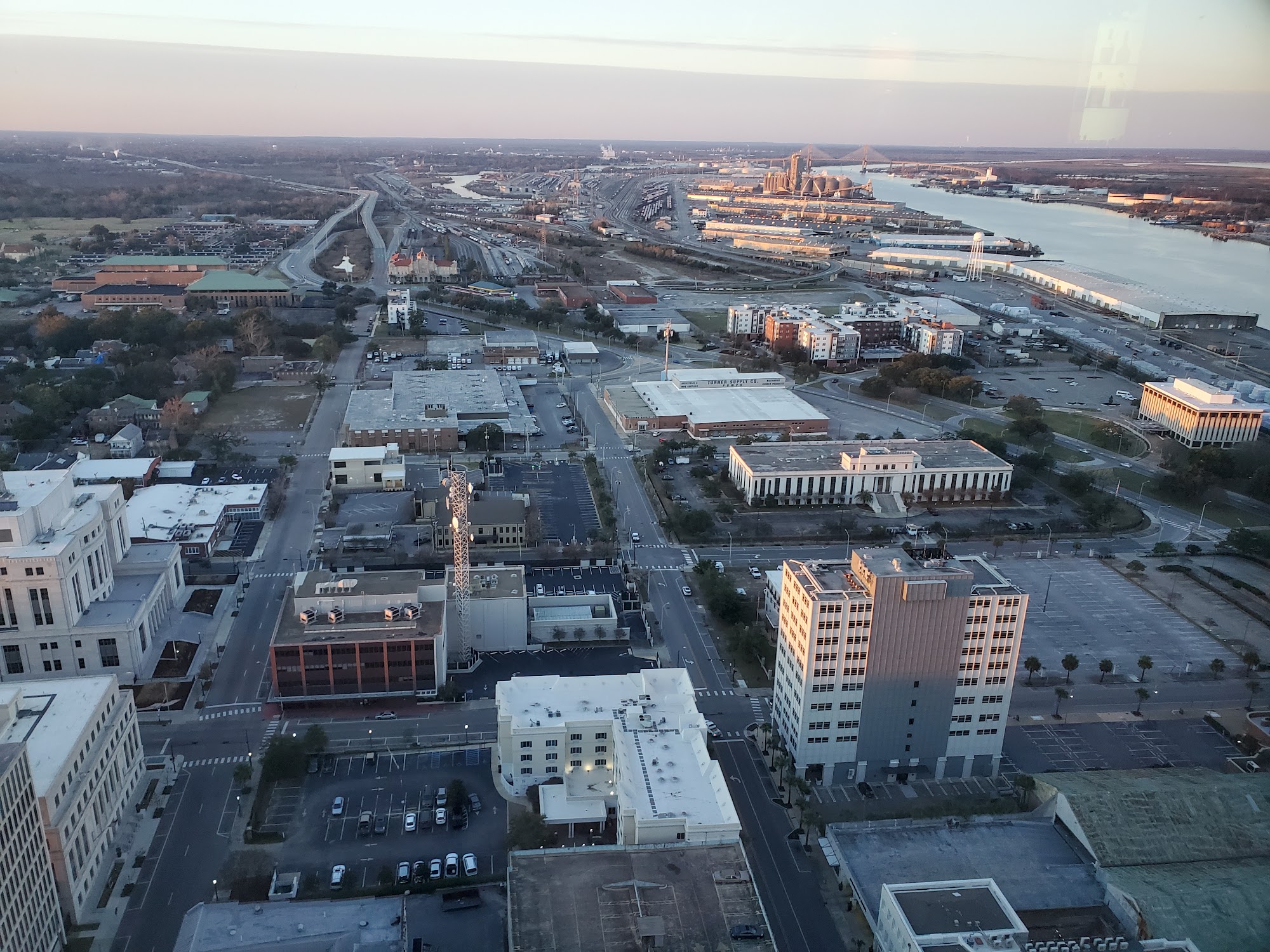 Nice historic building in downtown Mobile. It has a parking garage on the lower floors. A great restaurant, The Dauphin, is on an upper floor. Great views of downtown Mobile, the state docks, and the bay.