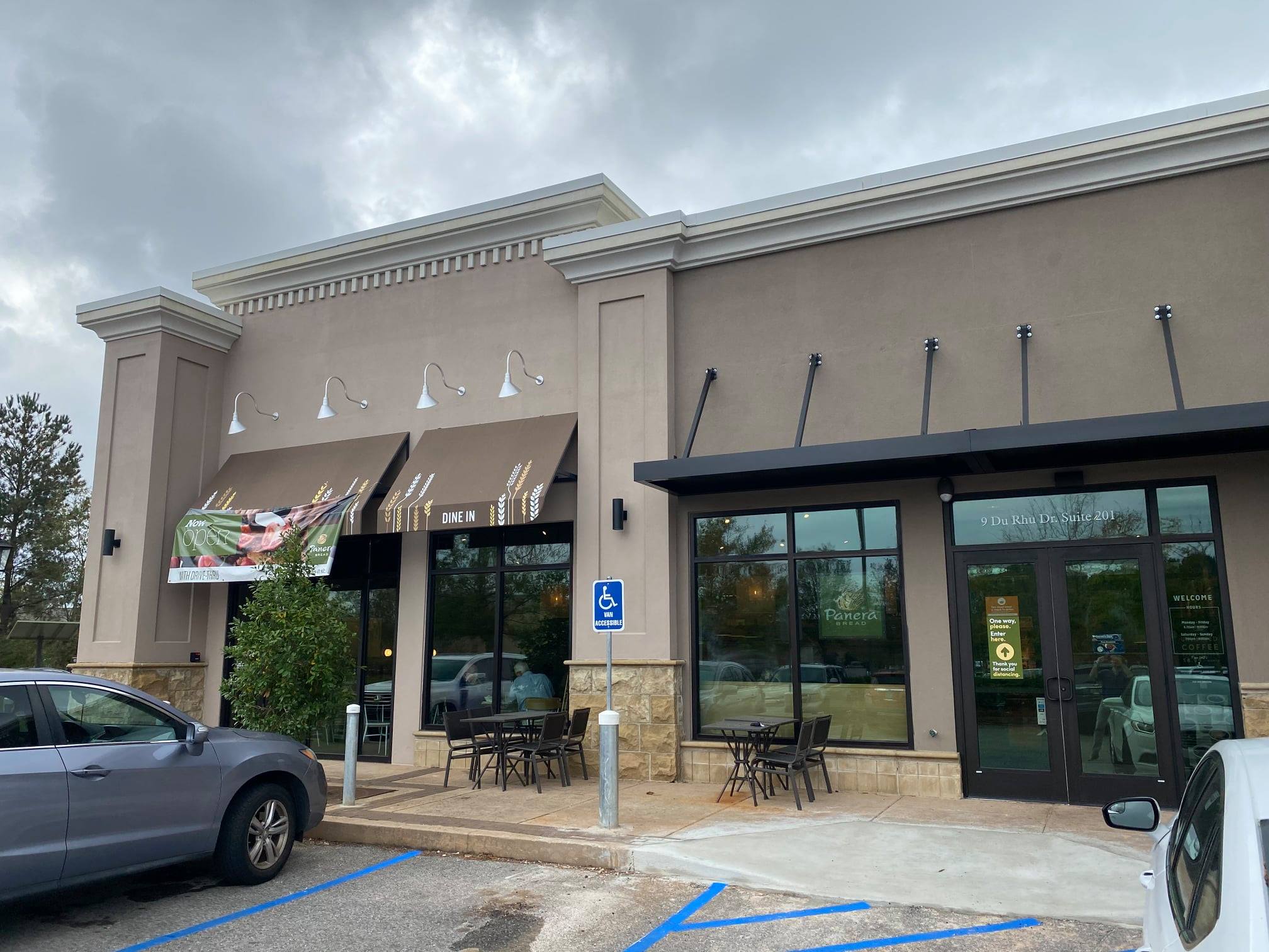 Large spacious parking lot and eat clean. Building