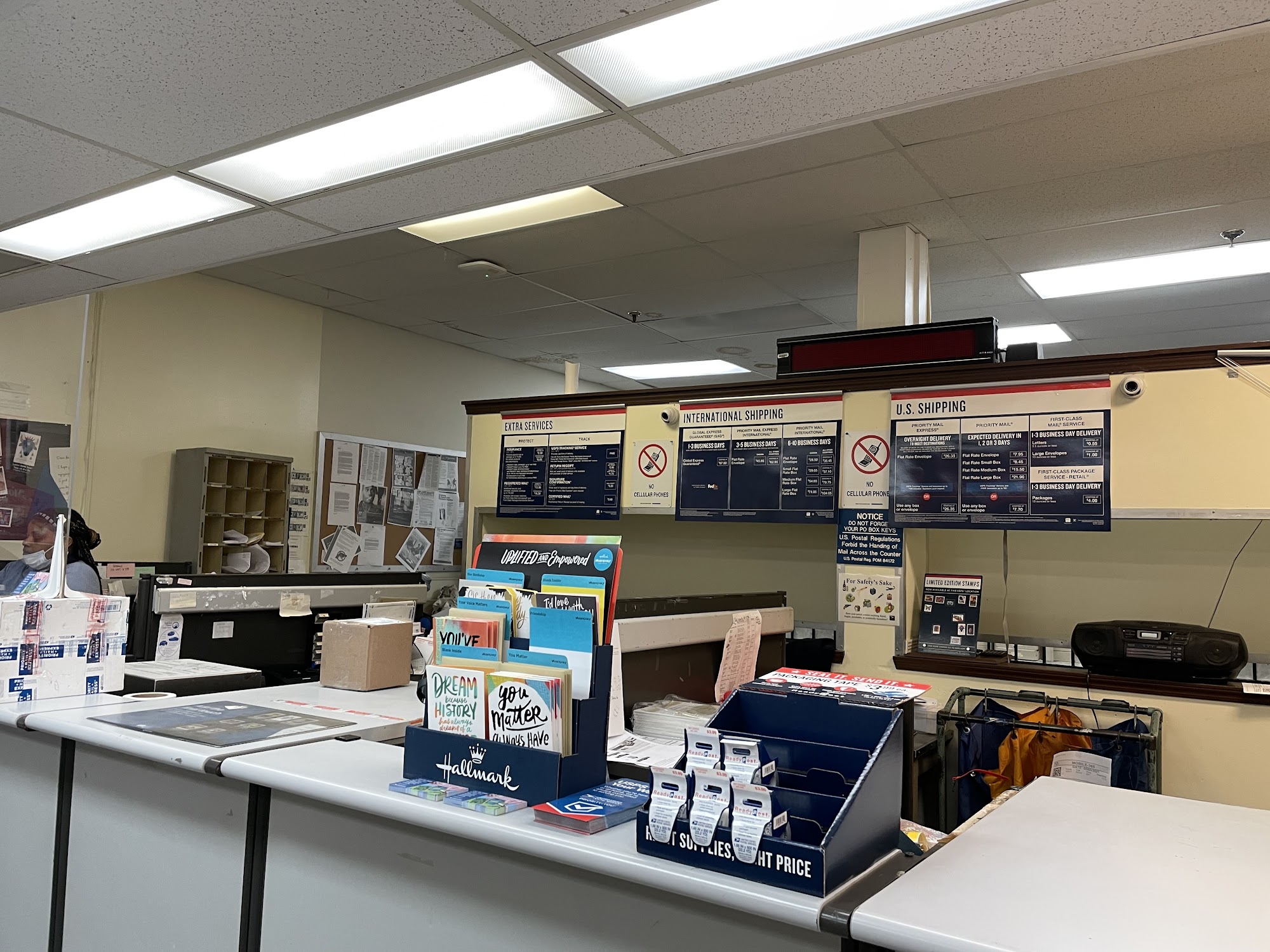The United States Postal Service offers friendly and efficient service, with employees who are helpful and welcoming. Customers appreciate the quick in-and-out experience and warm greetings from staff. The post office provides affordable mailing options, including certified mail with signature requirements, which is cheaper than other carriers. Some customers note that only cash is accepted at times, but overall, their visits are positive. Staff members are praised for their multi-tasking and excellent customer service, making each visit a pleasant experience.