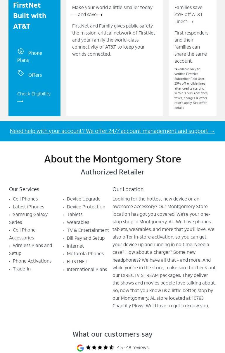 AT&T Store in Montgomery offers a variety of phones, tablets, smartwatches, and other connected devices from popular brands. Customers can choose from flexible wireless data plans, including prepaid options without annual contracts or credit checks, as well as unlimited data plans with nationwide AT&T 5G service. Reviews highlight the exceptional service provided by the staff. Jordan is frequently mentioned as being super helpful, courteous, and professional, making the experience enjoyable for customers. Janay also receives praise for her informative assistance and for going above and beyond to help with phone information transfers. Louis is recognized for his professionalism and knowledge, successfully guiding customers through upgrade offers. Overall, the AT&T Store in Montgomery is noted for its friendly and helpful staff, making it a great place to shop for mobile devices and services.