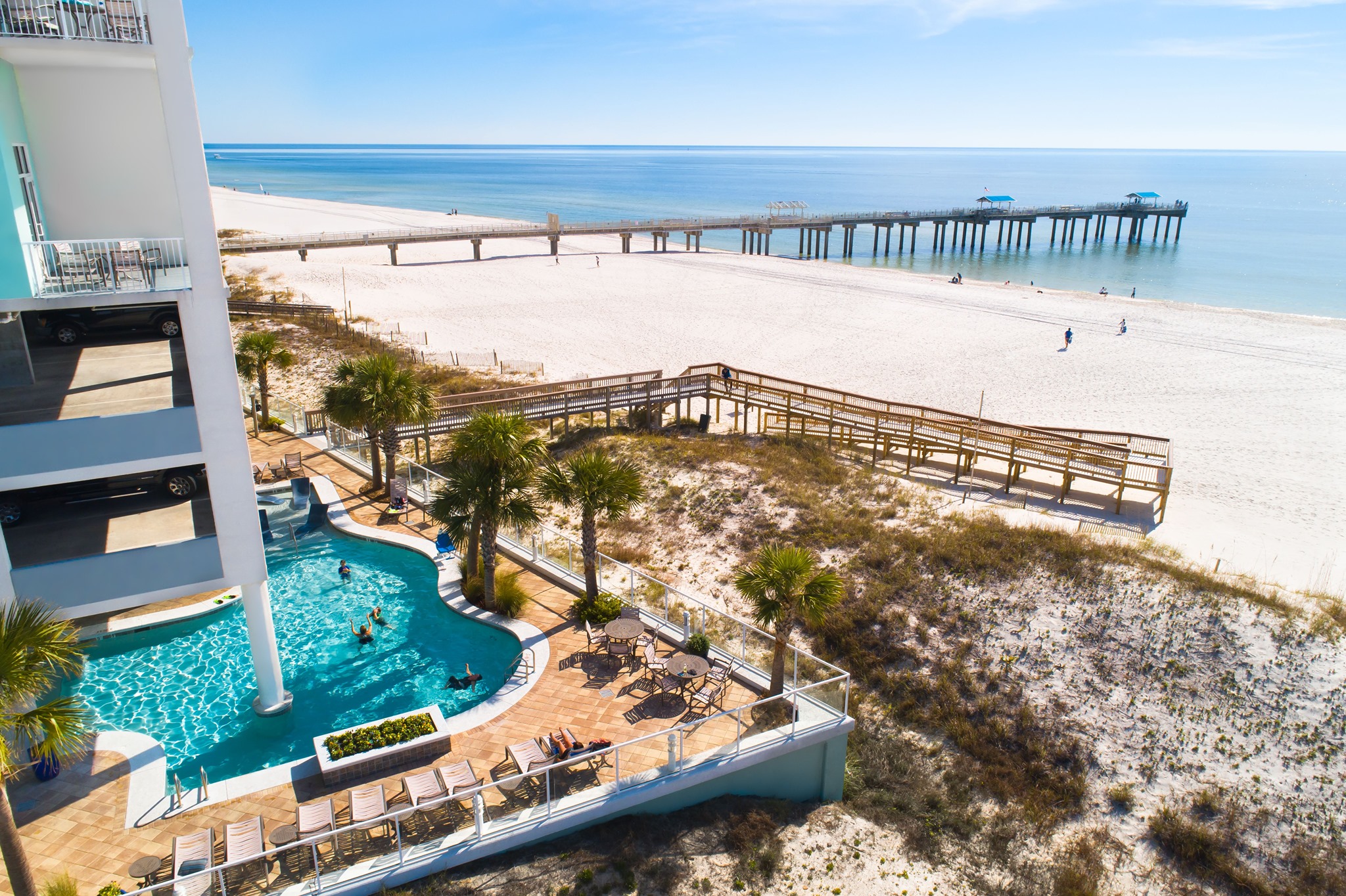 The room is very clean and beautiful! The pool over looks the beach and makes the walk down super fast and easy. The bar is amazing! Great music and vibes and Tia makes the best margaritas on the coast! Great place for kids and very family friendly!