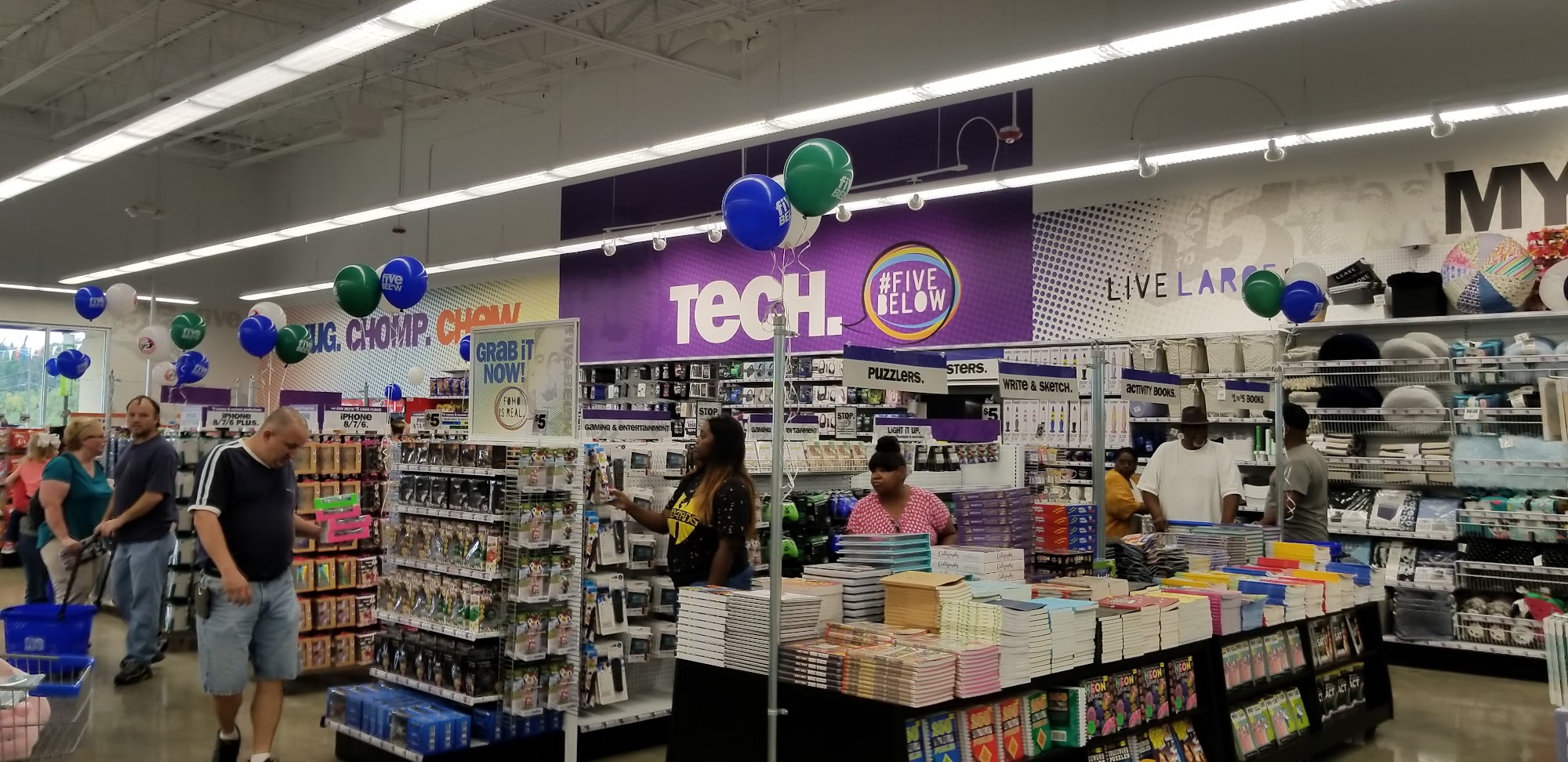Five Below is a store filled with inexpensive merchandise and a large selection of products, making it a great place to take kids. It offers a wonderful array of gifts for any age, including electronic accessories, handy gadgets, clothing, health and beauty items, pet items, decorating ideas, games, and a large selection of candy and snacks. Customers find it easy to shop for the newest, coolest stuff without worrying about high prices. The store is often clean and well-stocked. While most experiences are positive, noting wonderful and attentive staff who provide sweet service, there are occasional criticisms about management. Overall, it is a highly recommended store where kids love to shop and customers can find anything they could possibly need.