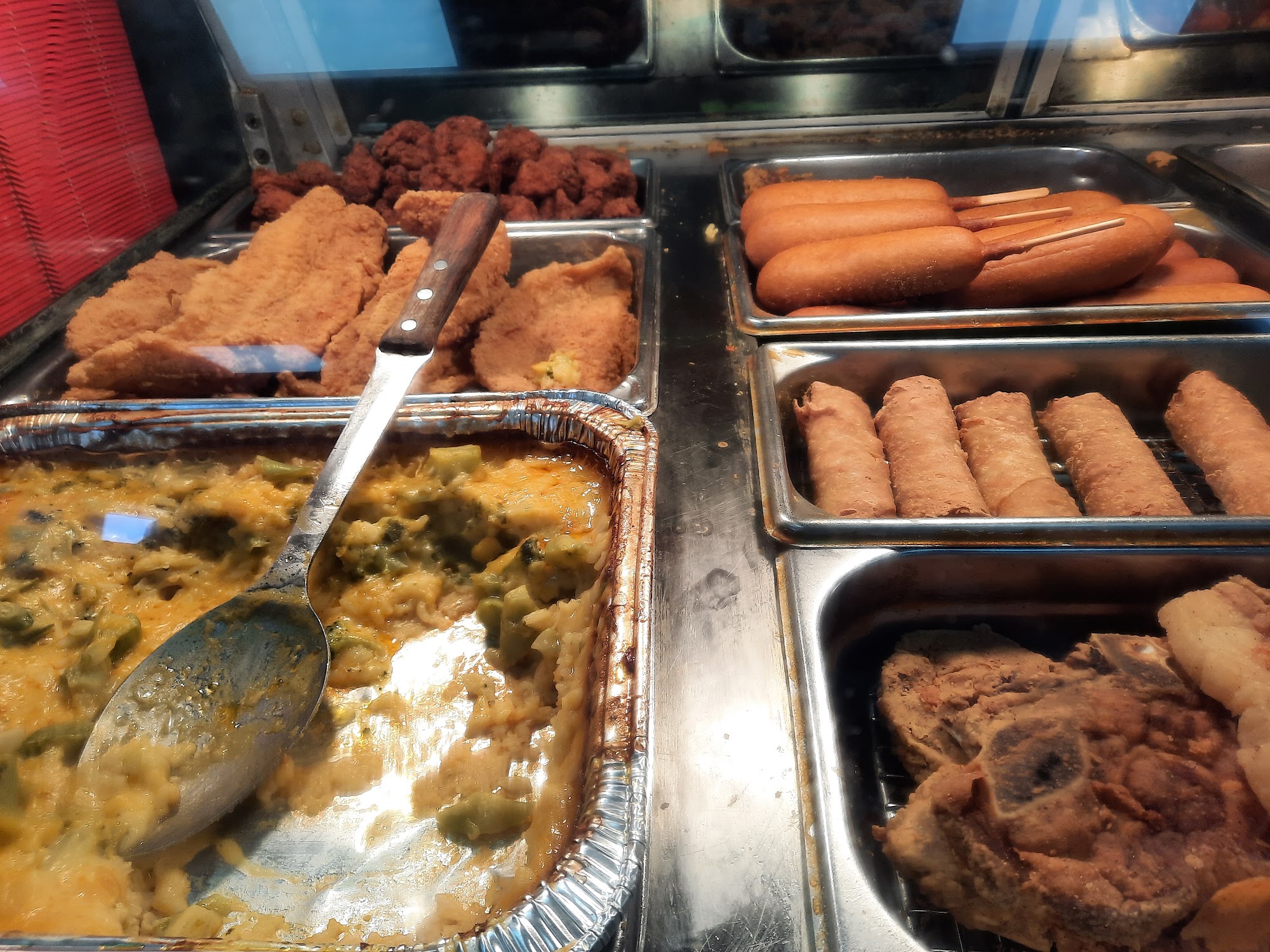 The bathroom was so clean!! There was steak fries and fresh fruit cups that I was able to get for my kids. They were friendly. The gas was a about ten cents more than down the road. The parking lot was clean. I mean, this place was a perfect little stop for me and my family. Thank you for being awesome.