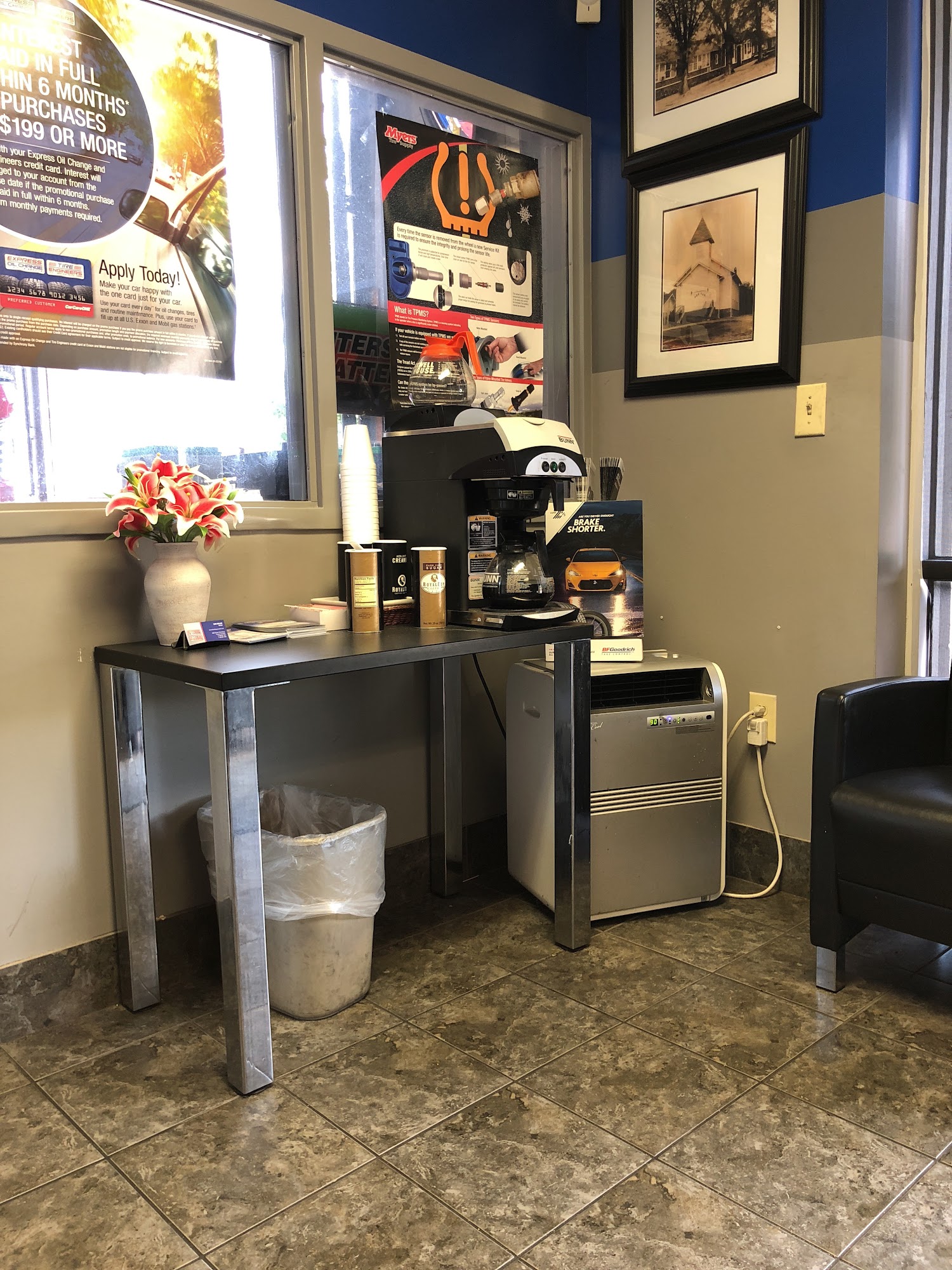 Express Oil Change & Tire Engineers provides quick and quality automotive service. Customers report very friendly, helpful, and professional service. The mechanics are knowledgeable and take time to explain all work done in a courteous manner. Services include oil changes, new tires, front-end alignment, AC repair like adding Freon and leak-checking fluid, and replacing windshield wipers. The process does not take long, offering quick and speedy service where customers are pleased and in and out. Many find the expense more reasonable compared to dealerships, leading them to choose Express Oil Change for all future service needs. It is seen as providing the best service ever.