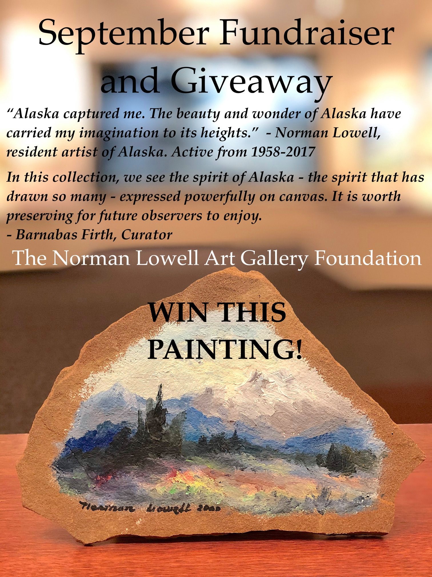 The Norman Lowell Gallery is a nonprofit art museum which houses the Permanent Collection of Norman Lowell, Alaskan homesteader and artist. The collection holds over 300 displayed paintings. The gallery also has numerous historical artifacts to view and art for purchase. Admission is free.