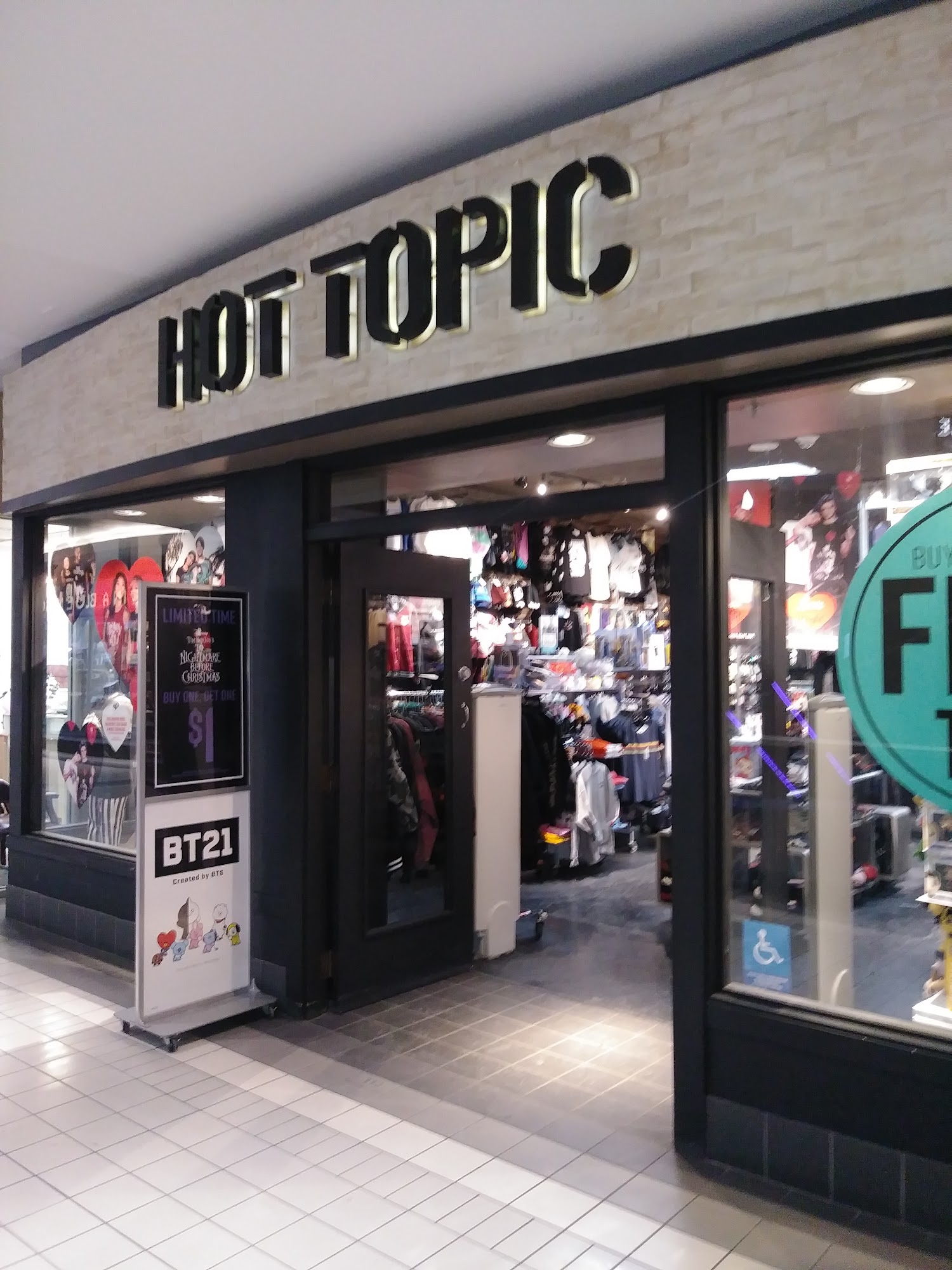 Hot Topic is an awesome store with a friendly vibe. The manager is great and provides fantastic customer service, always a pleasure to talk to and very helpful. The store offers great deals on sale racks and the latest in geek fashion, including band merchandise. The clothing and material are decent quality. However, the store can be a bit smaller and some items have limited sizing. It is also considered pretty pricey. Services like ship to store are available.