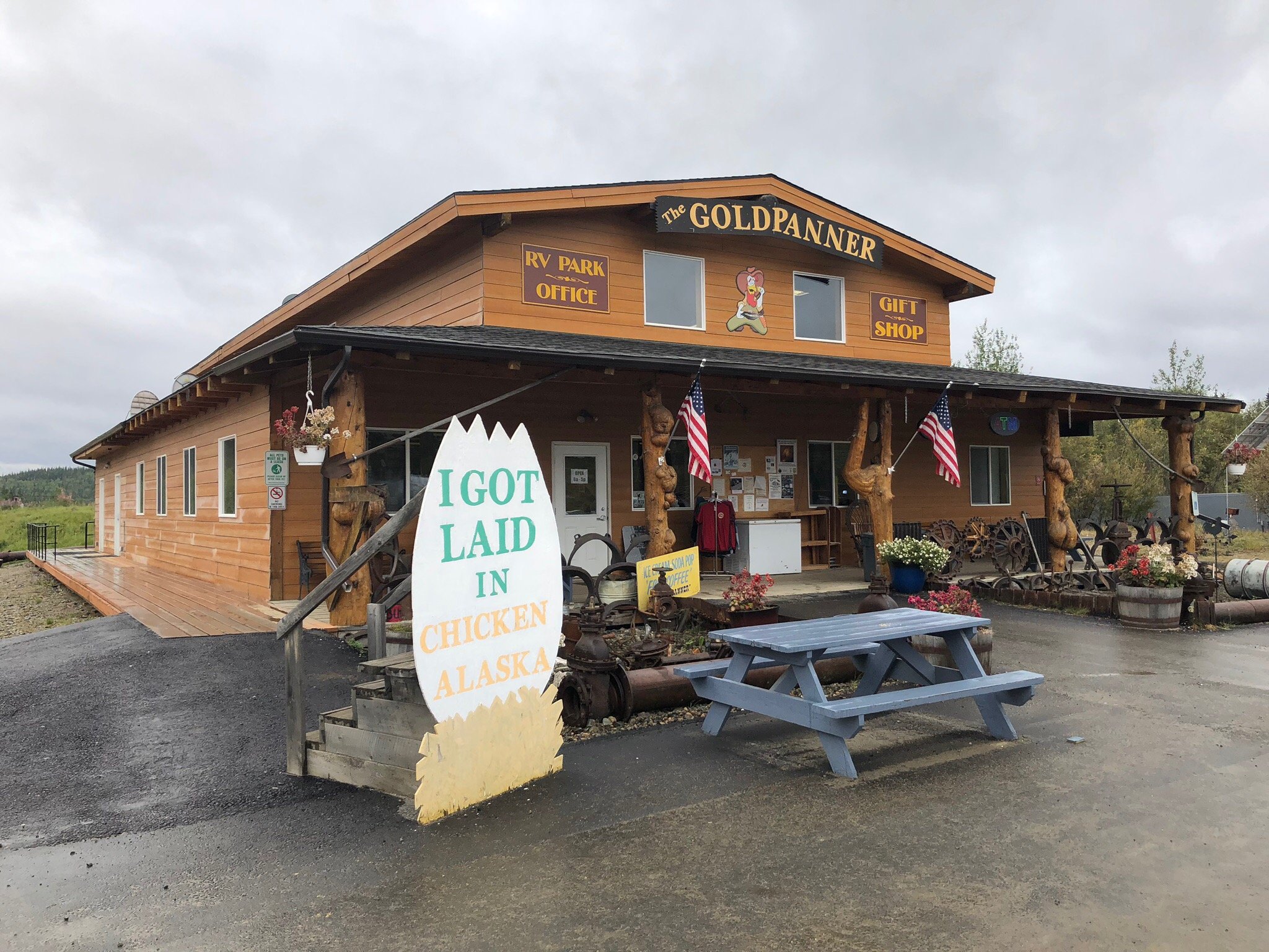 Downtown Chicken has a bar, giftshop, cafe, and salmon bake. If you arrive in the morning, try some of Sue's famous Cinnamon Rolls - these things are incredible. Say hi to Sue or her son Max. They are always there! Print out and turn in our Online Coupon from our website to get your free gift in the giftshop! Be sure to visit the Post Office (delivering mail since 1906) and say hi to Robin. She'll wonder how the heck you knew her name.