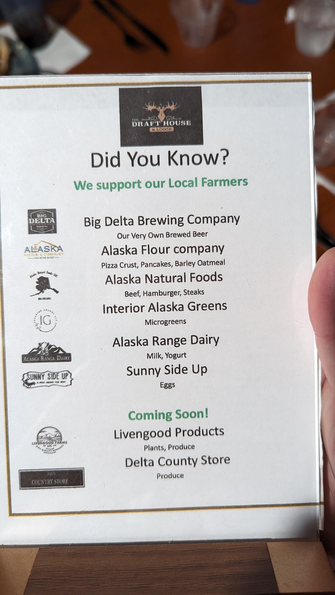 The Draft House and Lodge is a welcoming place for travelers and locals alike, dedicated to serving delicious meals alongside great craft beer. The establishment partners with community farmers to source many ingredients for its full menu, which includes breakfast, lunch, and dinner options. Guests can enjoy their own brewed beers from Big Delta Brewing Company at the full bar. With a recently remodeled dining room, visitors can relax and watch sports while savoring homemade dishes. While the food is praised for its quality, some reviews mention slower service and occasional unavailability of certain menu items, which is typical for the area. However, the friendly staff and beautiful atmosphere make it a worthwhile stop. The Draft House and Lodge also features 17 rooms for those looking to stay overnight. Overall, it’s a great spot to enjoy a meal and a cold beer after a long drive, with a commitment to community and quality.