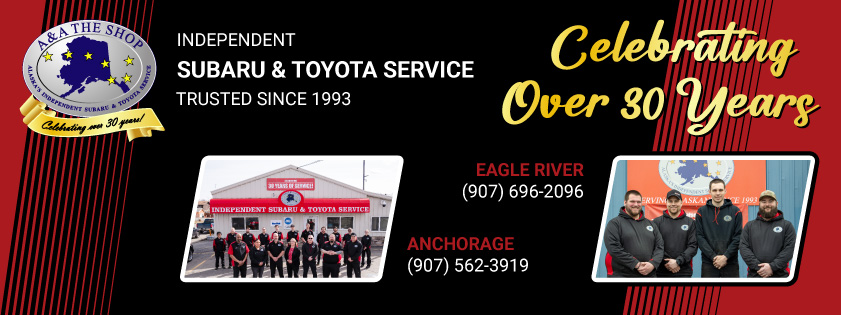 We are an Independent Subaru / Toyota Repair & Maintenance Service shop with two facilities located in Anchorage and Eagle River, Alaska. Our Technicians have over 100 years of experience working on all models of Subaru, Toyota (including Lexus & Scion) Vehicles. Rest assured that all of your maintenance, diagnostic, and repairs are completed to your full satisfaction, and we guarantee those repairs with an industry-leading warranty of 36 Months or 36,000 miles.