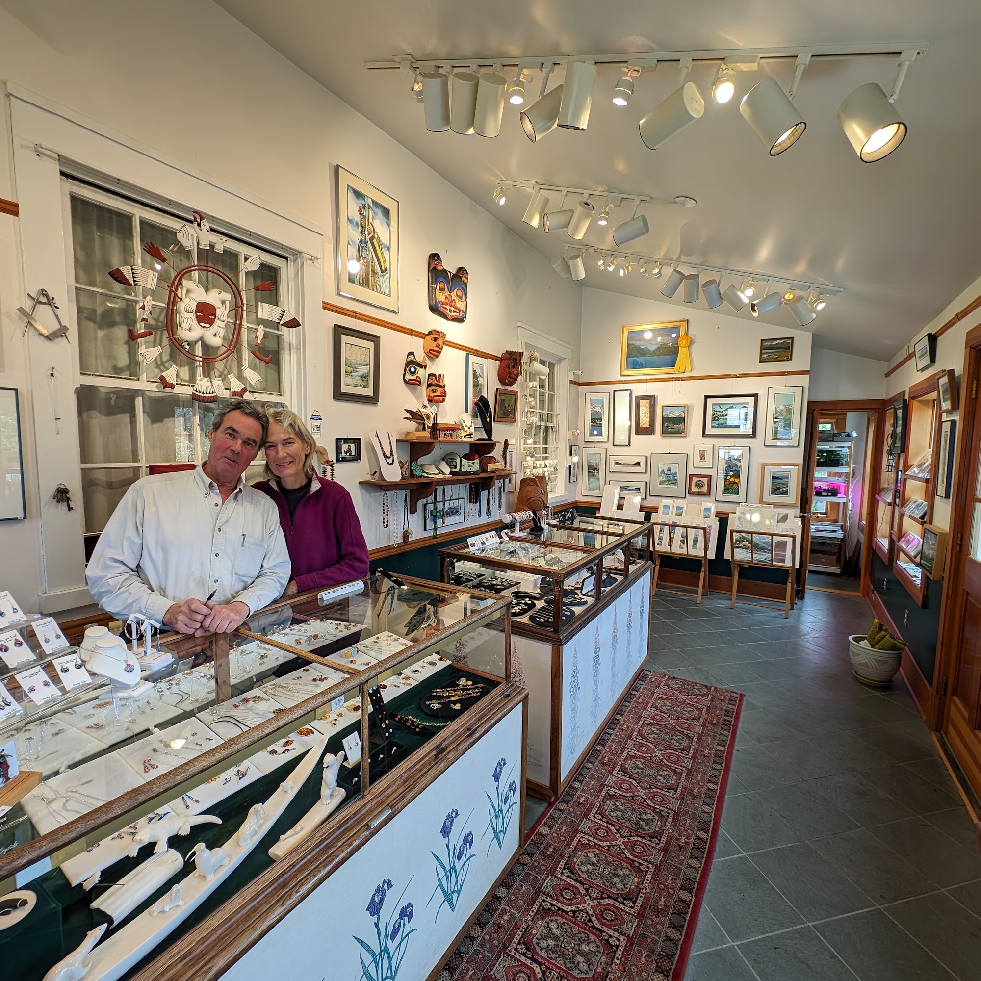 The Wild Iris is an awesome, cute, and quaint shop. It is a lovely store with very nice stuff, including Alaskan art, local jewelry, souvenirs, carvings, cards and prints, paintings, and custom wedding rings. The staff provides friendly, knowledgeable, and helpful service with good conversation. The business also offers jewelry and eyeglasses repair. Visitors enjoy the beautiful, nice Alaskan garden outside, which is especially lovely in summer and spring. It is a favorite stop for many, featuring reasonable prices and a fun proprietor. It is definitely worth a visit and worth stopping in.