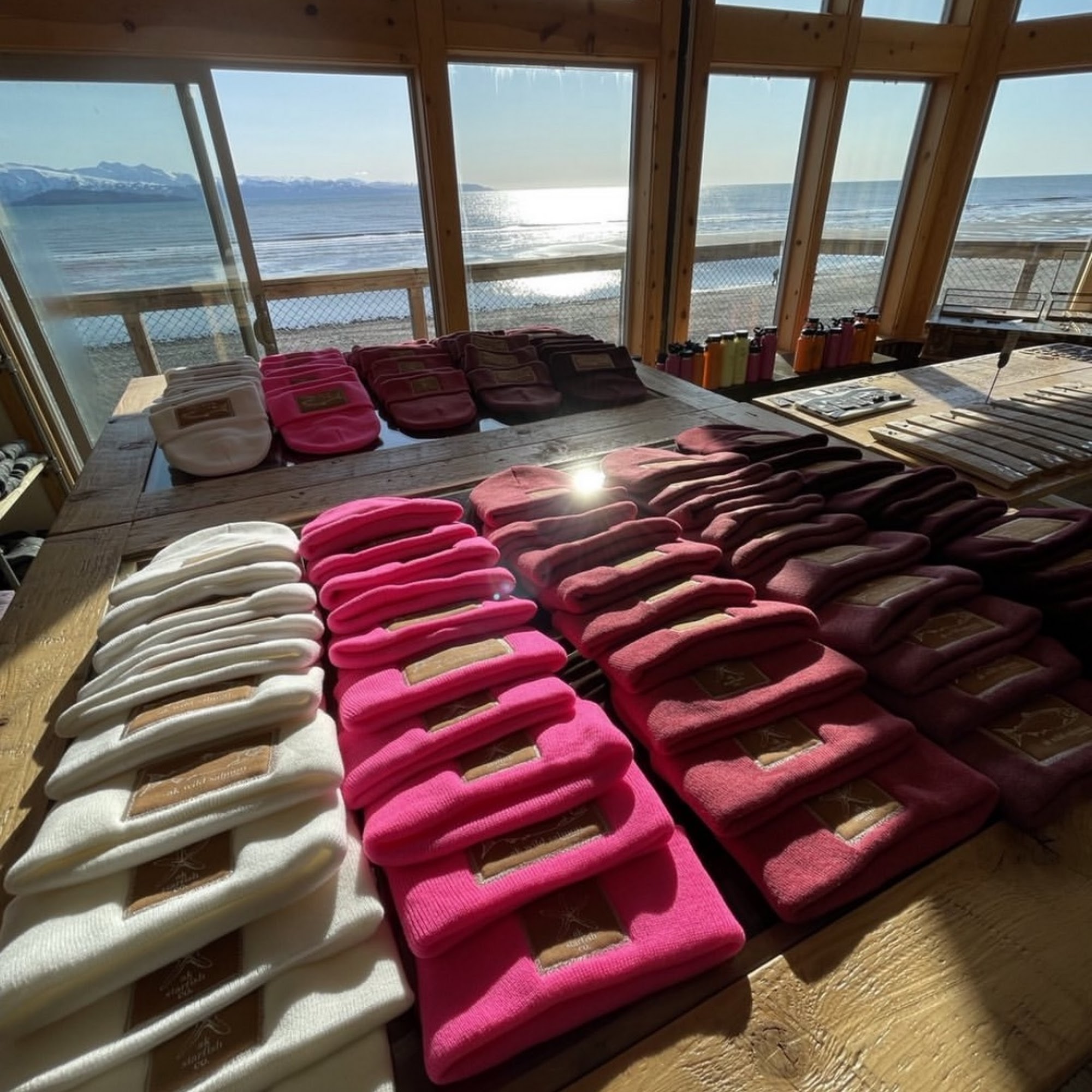 What a gem of a shop on the spit! We stopped in for a sweater for a friend who needed an extra layer and that was absolutely the right place. I picked out my new favorite sticker for my water bottle and enjoyed the absolutely insane views out of the windows in the back.