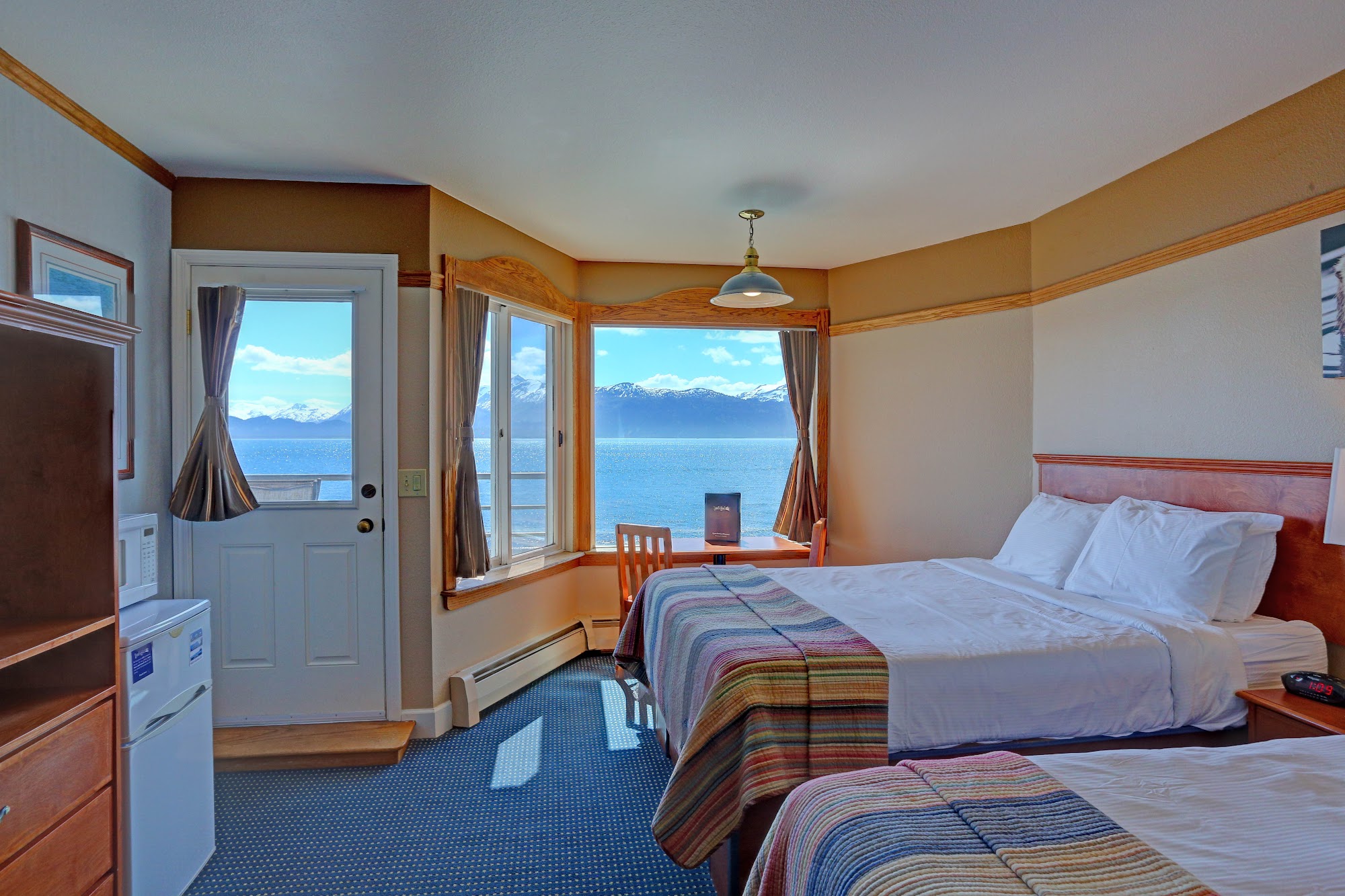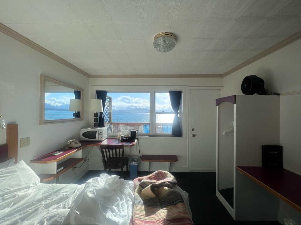 Lovely stay at Land’s End on the Homer Spit. Views are hard to beat. Comfortable room, excellent bath tub, and quality amenities. Watch otters play in the water from your room. Don’t forget to reserve a soak in the private hot tubs with a mountain view!