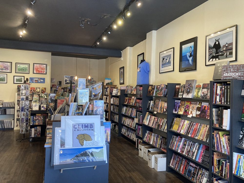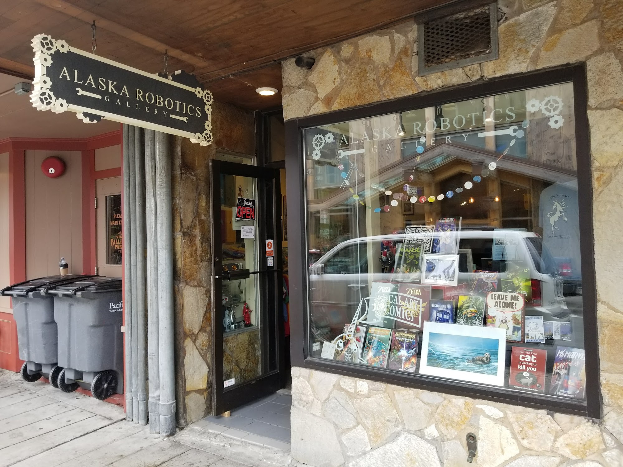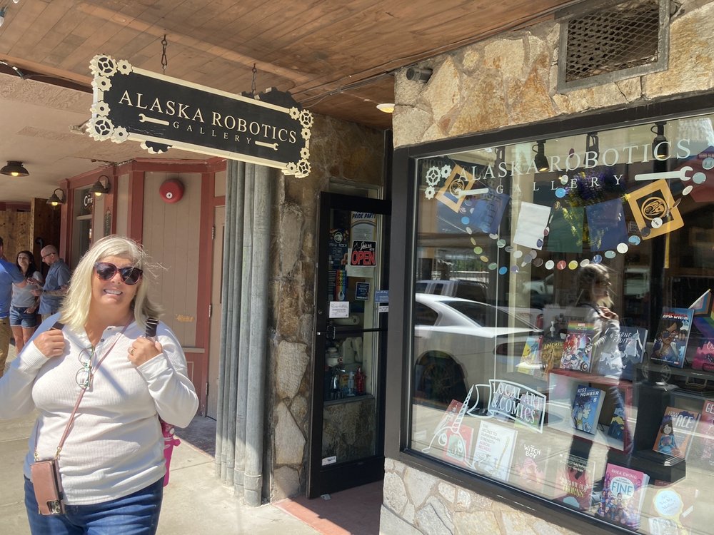 Alaska Robotics Gallery offers a great selection of games, anime, comics, and art. The friendly staff are helpful and approachable, assisting customers in finding specific games and explaining how to play others. The store features eclectic music, likely J-Pop, and displays graphic novels that humorously reflect local politics and issues. Though small, it is a favorite among several board game stores in the area, providing a welcoming atmosphere for all visitors.