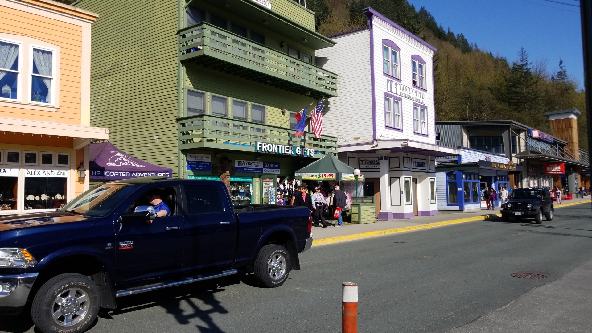 Frontier Gifts is a souvenir shop near the cruise terminal. People say the staff are respectful and helpful. They packaged and shipped purchases for free, and the package was waiting at home after vacation. When items were not in stock, staff suggested other stores. Many people choose this shop first to save time for sightseeing. People were a pleasure to work with.