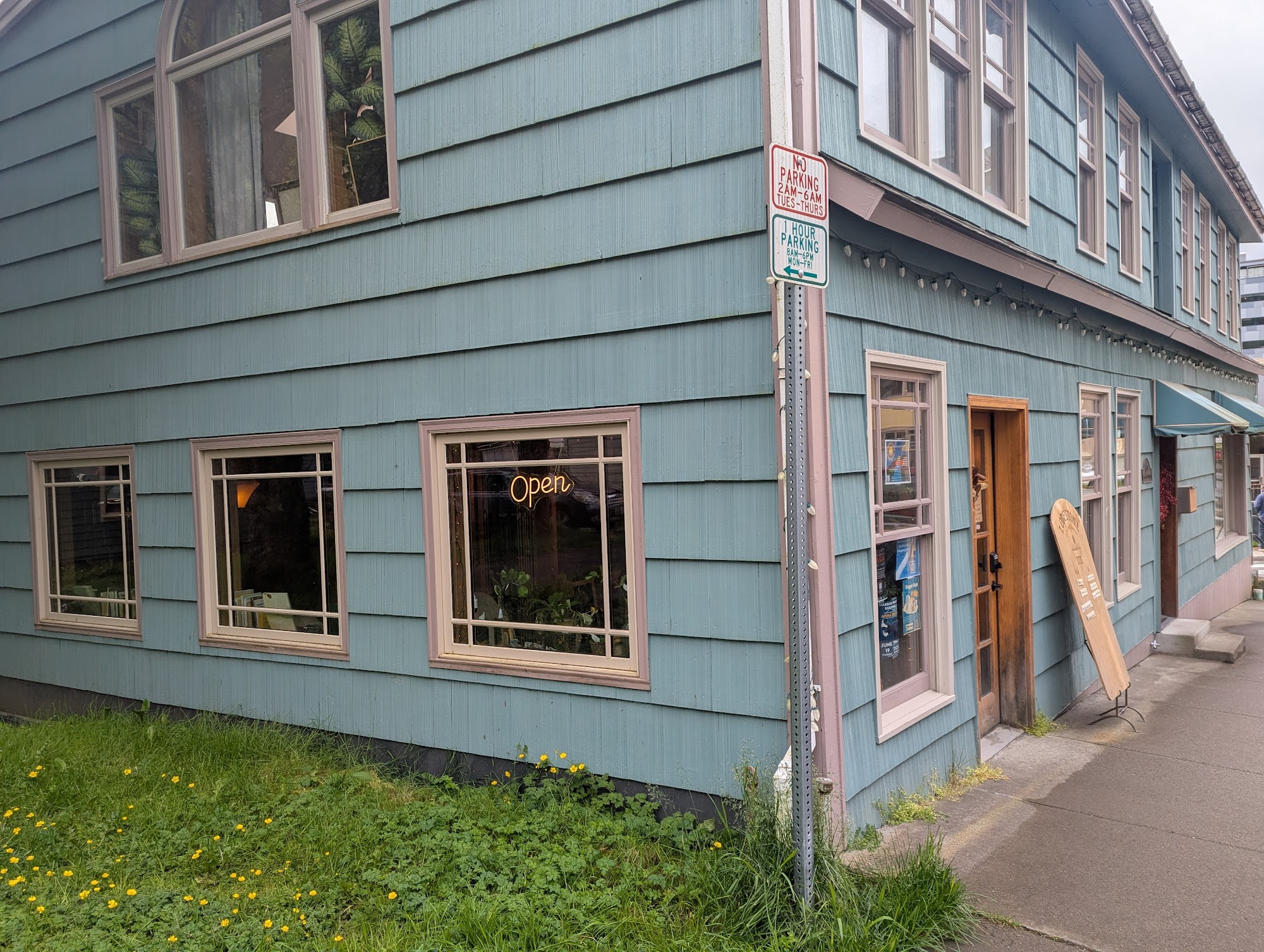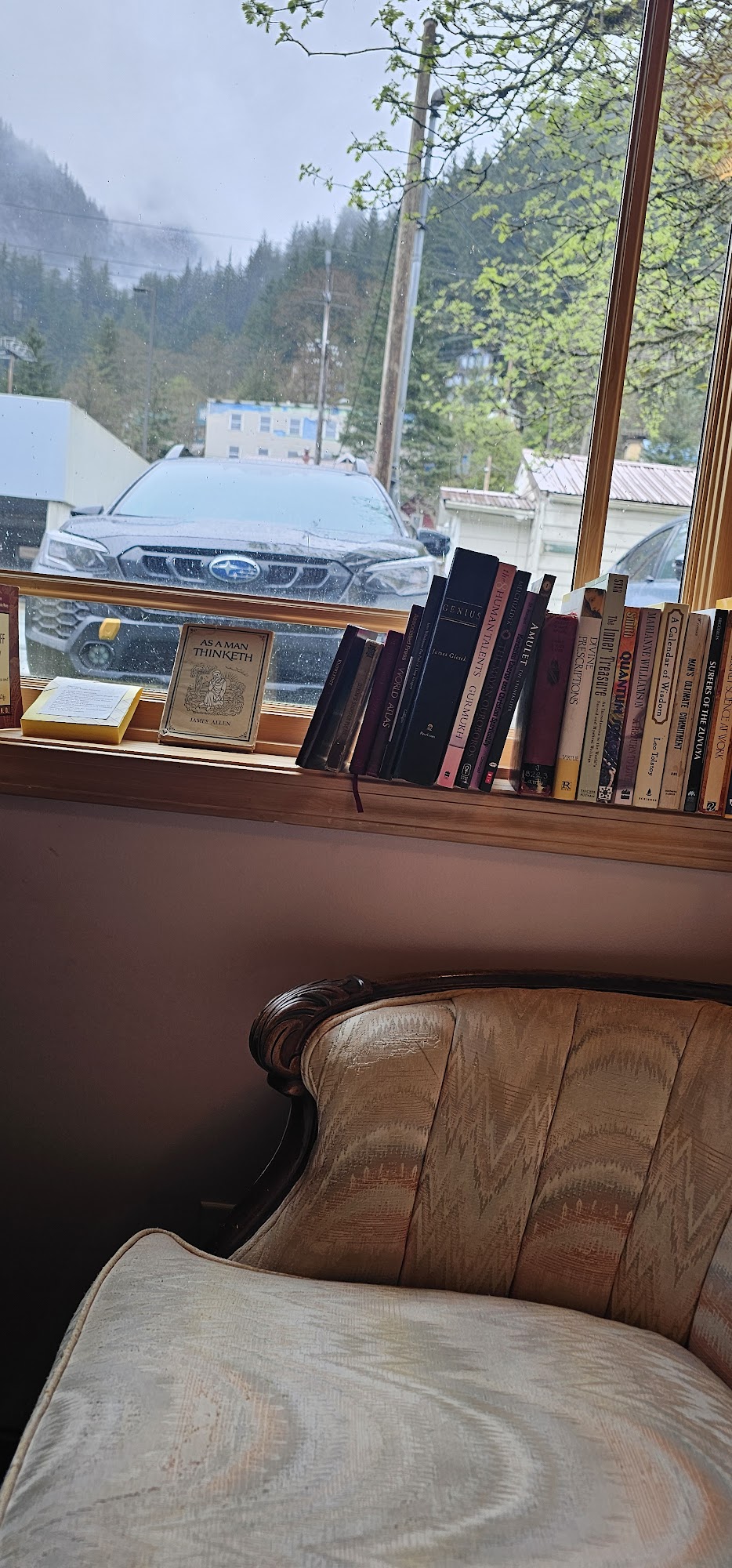 This is my new favorite place to relax when I am walking around Juneau and need a calm spot to kill half an hour. Friendly staff of volunteers, interesting book assortment, affordable self serve coffee and tea, and tasty baked treats. They even have a couple of guitars laying around that you can pick up at will and play.