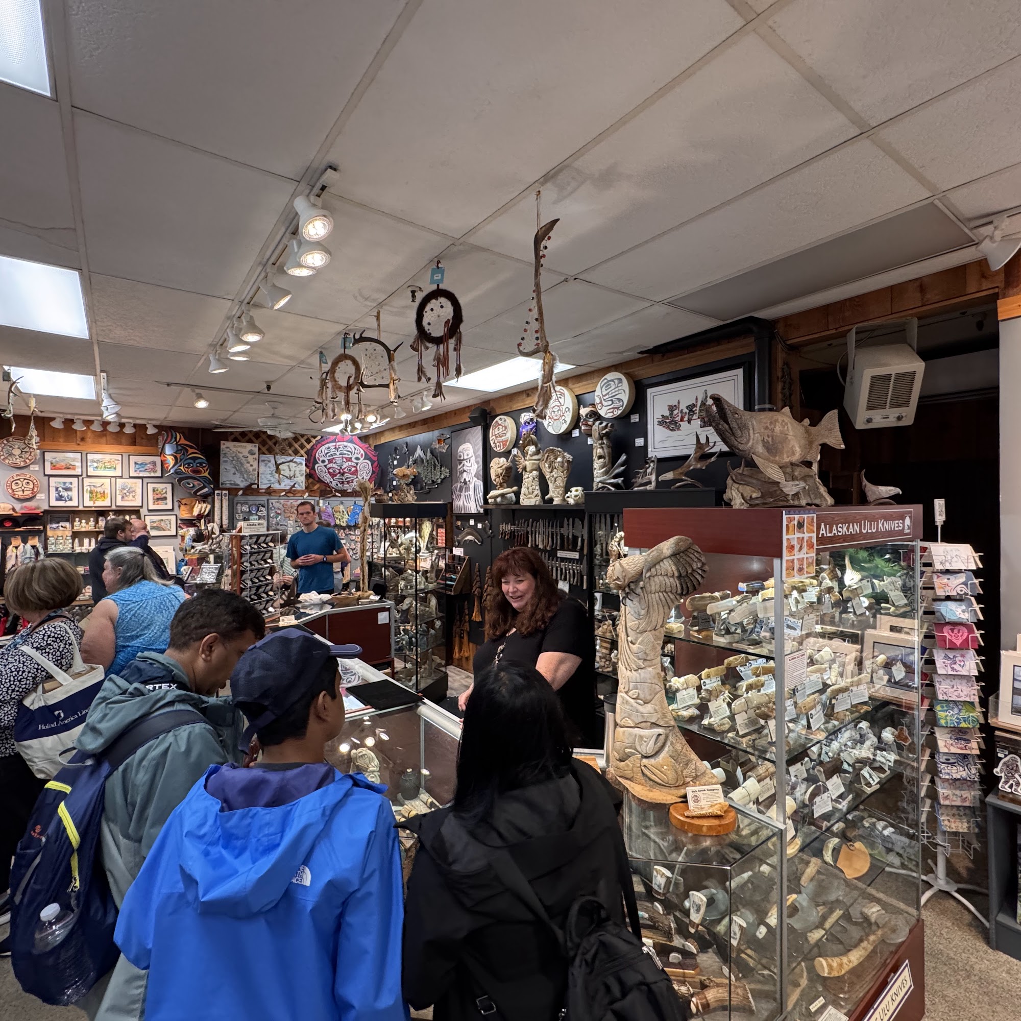 Fish Creek Company is a store on historic Creek Street in Ketchikan, within walking distance of the docks. It offers lots of beautiful local art, jewelry, fun souvenirs, and unique gifts. Items include marvelous jewelry, a Salmon Blanket, wooden puzzles, steel art, Little Peaks, animals, hoodies, and beautiful Christmas decorations, often featuring amazing indigenous artists. The staff are super friendly and always helpful. They have an online store and orders arrive within a few days. When you spend a certain amount, shipping is included, which is useful for larger pieces. It is a recommended place with something new to discover.
