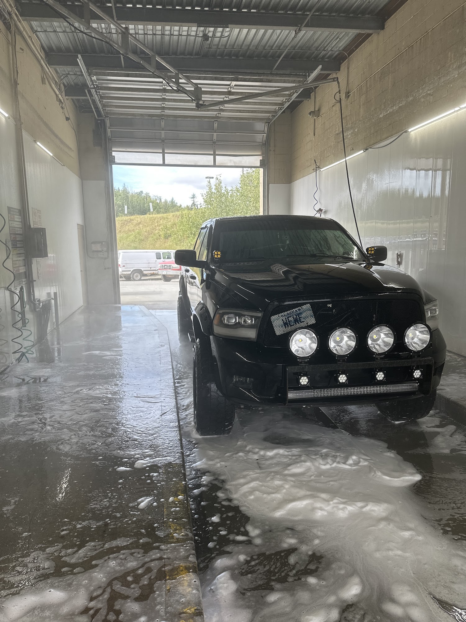 Nice car wash next to Midas. Parking lot can be tricky to maneuver in if you have a trailer or long rig. Self service and touch less bays. Even has a tall and long self service bay