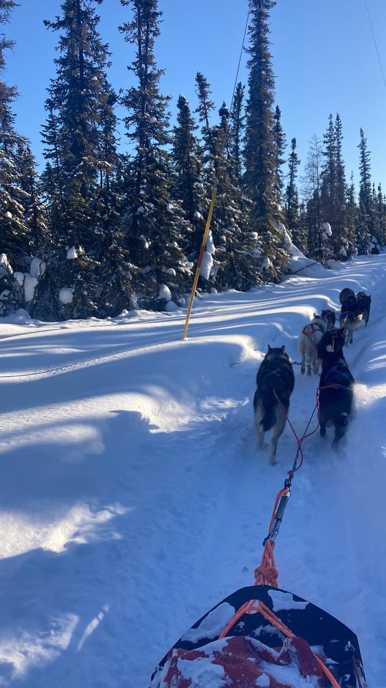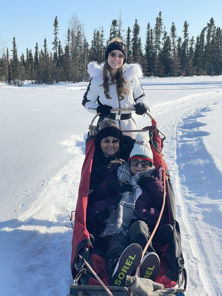 Alaska's Trail King Adventures offers unique and personalized dogsled rides in the Fairbanks area. It is a very quiet place, not overly commercialized, and located about 45 minutes from Fairbanks, which is worth the drive. The experience features a scenic, five-mile dog-powered sled ride through the beautiful Borealis forest. The trail is described as amazing and dream-like, especially with the winter morning lights and vibes. The friendly and enthusiastic owners are incredibly kind, attentive, and hospitable. They ensure guests stay warm, share stories of many adventures, and even set up a small fire to warm up after the ride. The fun, energetic, photogenic, adorable, and very well-trained dogs are a major highlight. Guests can hear their energy and meet the puppies, which is a special touch. This highly recommended tour provides a wonderful, unforgettable, and truly memorable Alaskan adventure.