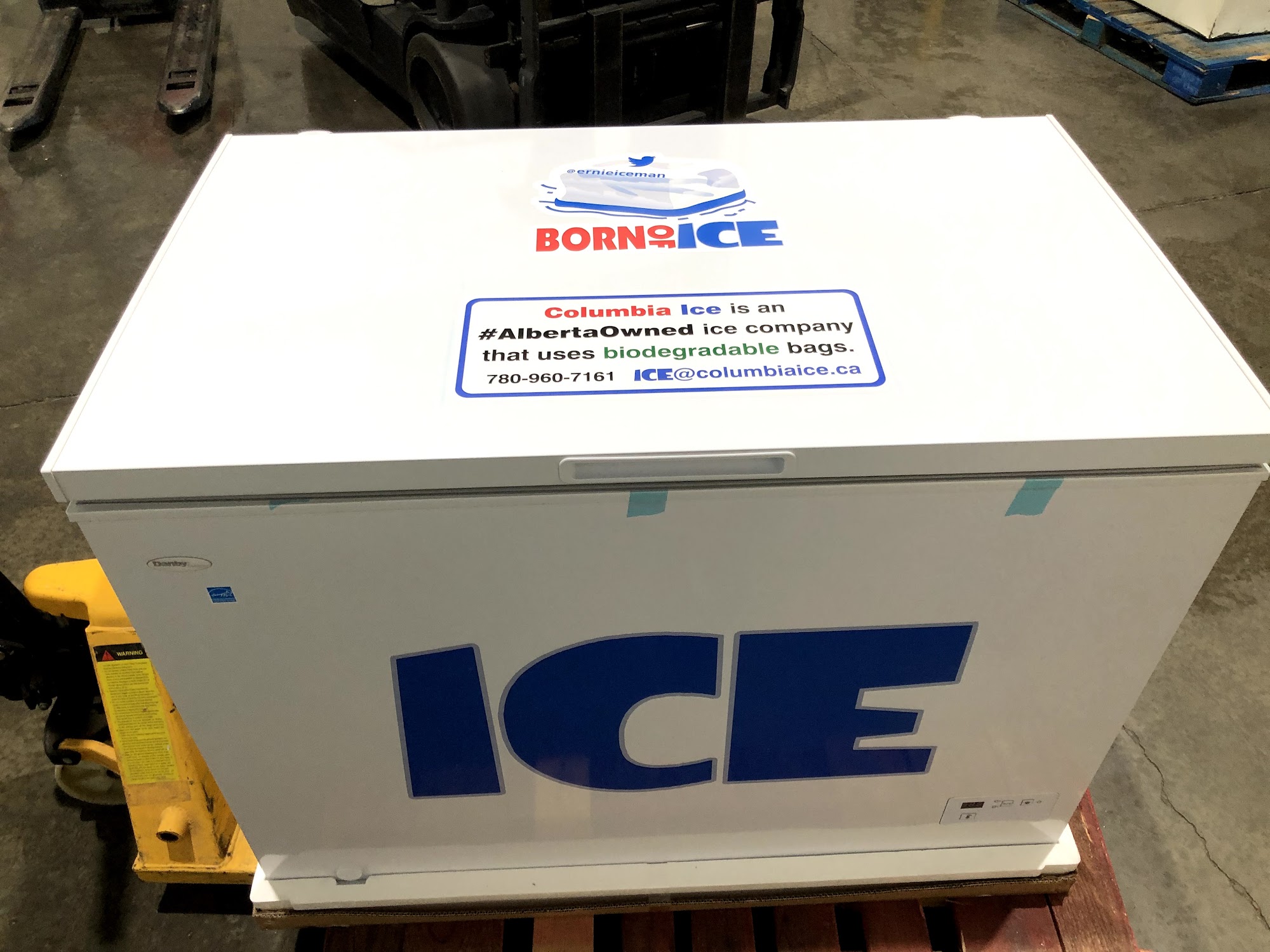 Columbia Ice makes and delivers packaged ice. Our ice factory is in Acheson, our main delivery area is Edmonton and surrounding area. We also provide reefer service across Alberta which means you need to order a semi truckload of ice. We are #AlbertaOwned