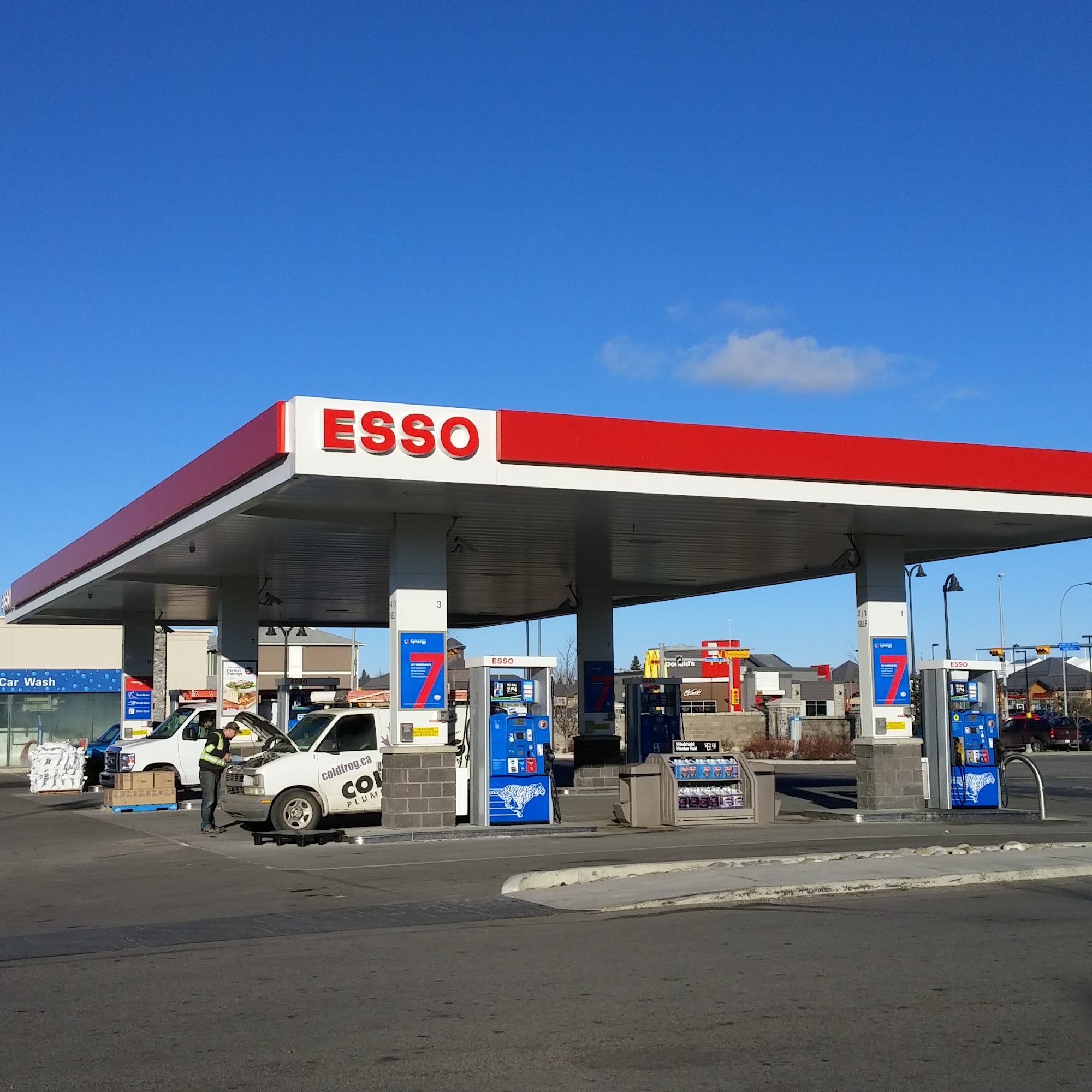 This Esso gas station is a convenient stop with snacks and coffee for road trips. It is very easy to get to and from the freeway, located in a busy part of the city but relatively easy to get in and out of. The layout accommodates trailers with easy pull-through access and ample room. It features a car wash described as a magical, life-changing experience. You drive in, park, and watch as soap pours over the car, a machine cleans it, and water rinses it off. Finally, air blows the car dry, leaving it clean and shiny. The staff is very friendly and helpful. However, some note the fuel pricing seems inflated or atrocious compared to other stations, though others choose it for the rewards program. It is a great place with a fantastic car wash that brings a happy feeling.