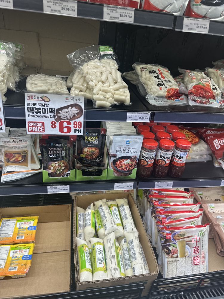 A-mart is a popular Korean superstore located in a convenient spot, offering easy parking. Although it is a small place, customers can find a wide range of authentic Asian food and ingredients, including a great selection of mirin, sauces, spices, and basic cooking ingredients. The store also has a good selection of meats, and the staff are very friendly and helpful, even with translation assistance. Customers appreciate the better prices compared to larger chain grocery stores, and they particularly enjoy the fresh packaged Korean side dishes, frozen eels, and K-noodles. The store is known for its selection of items for Korean BBQ at home, and customers find the prices to be better than the nearby chain stores. The store is always clean and organized, despite its compact size, and the staff are incredibly helpful and welcoming. While parking can be tricky during busy times, the store's extended hours until 9 pm on weekdays make it a convenient option for those in the neighborhood. Overall, A-mart is a well-stocked, affordable, and customer-friendly Korean superstore.
