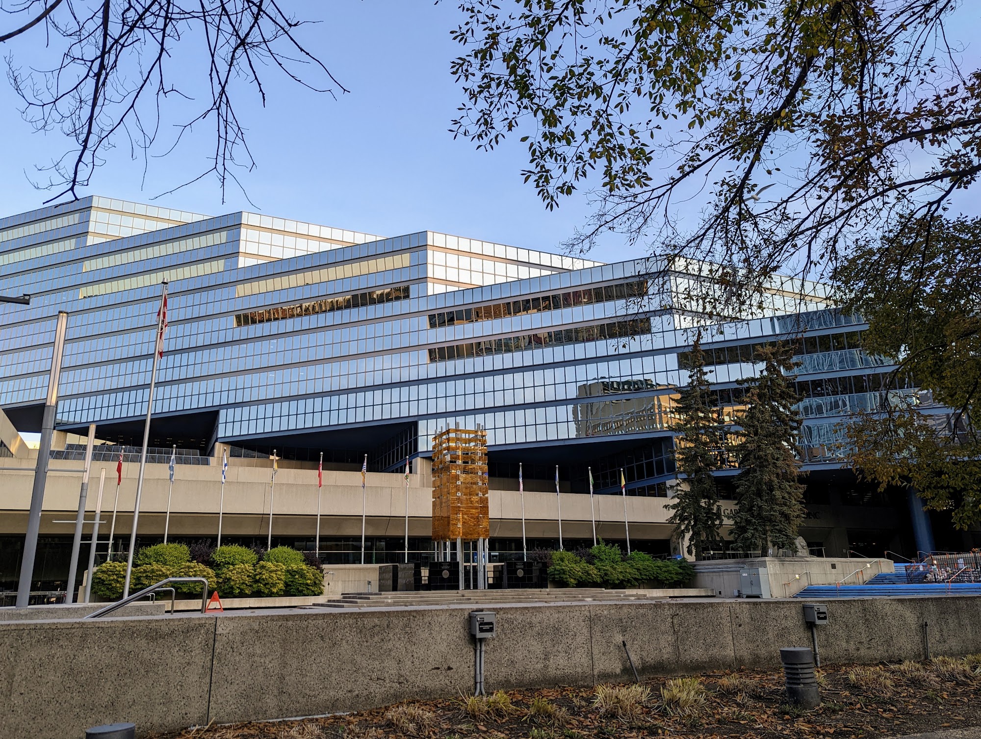 The Calgary Municipal Building is a well-maintained and helpful government facility in the heart of the city. The building's stunning architecture, featuring a mix of modern and historic elements, creates a visually appealing atmosphere. Visitors can enjoy the scenic views of the downtown skyline and the Rocky Mountains in the distance, making it a great spot for photography and sightseeing. The interior is public-accessible and houses various administrative services, including transit pass sales and pet registrations. The staff is described as friendly and efficient, ensuring a smooth experience for visitors, even during busy periods. While the information desk on the main floor is no longer available, the building remains a central hub for the city's administrative needs.