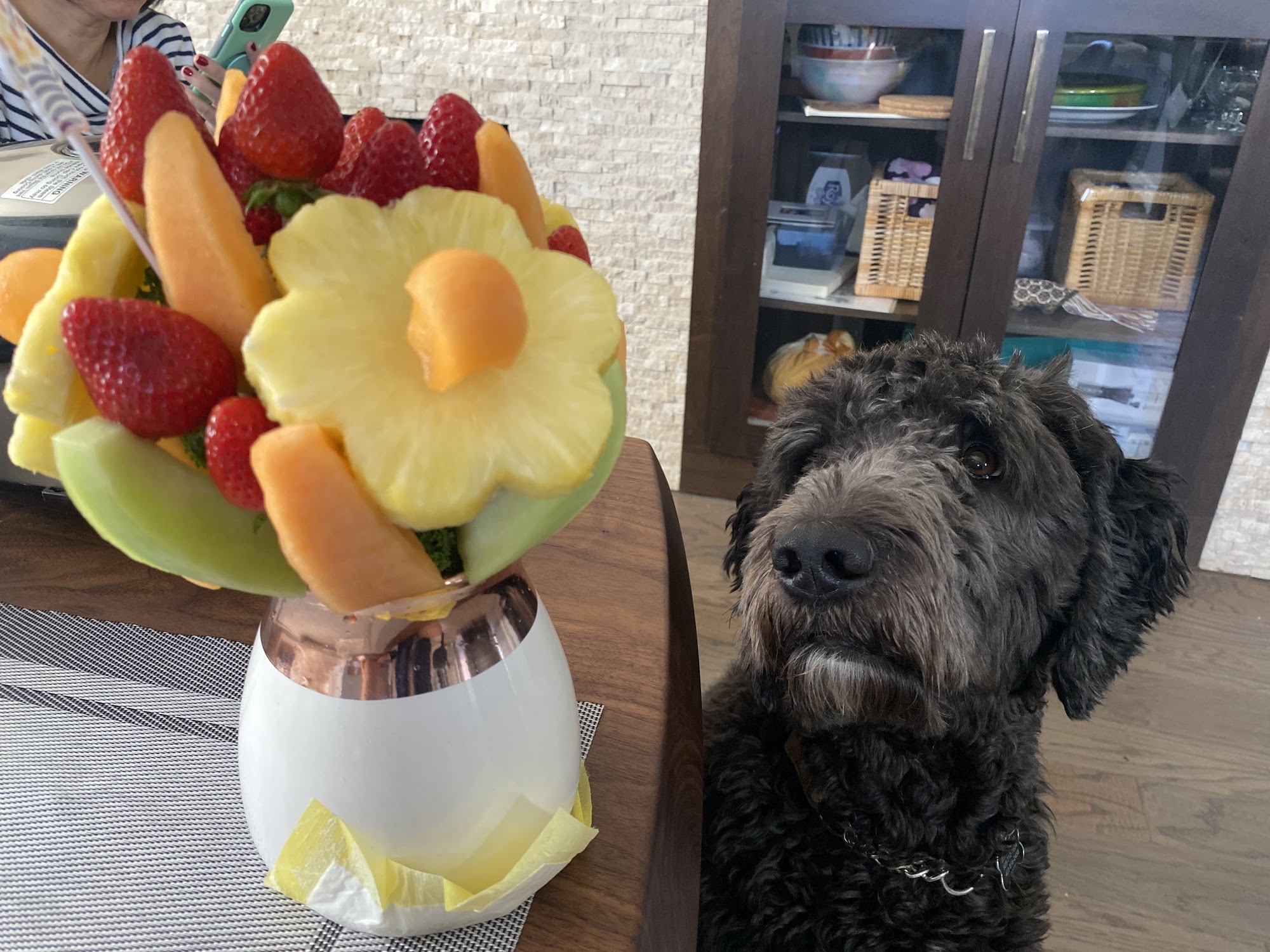 This is what we received today. Saturday on a same day order.After my advisor got really angry with the store they decided to send some half dead roses. Couldn’t take the chance to eat the fruits.