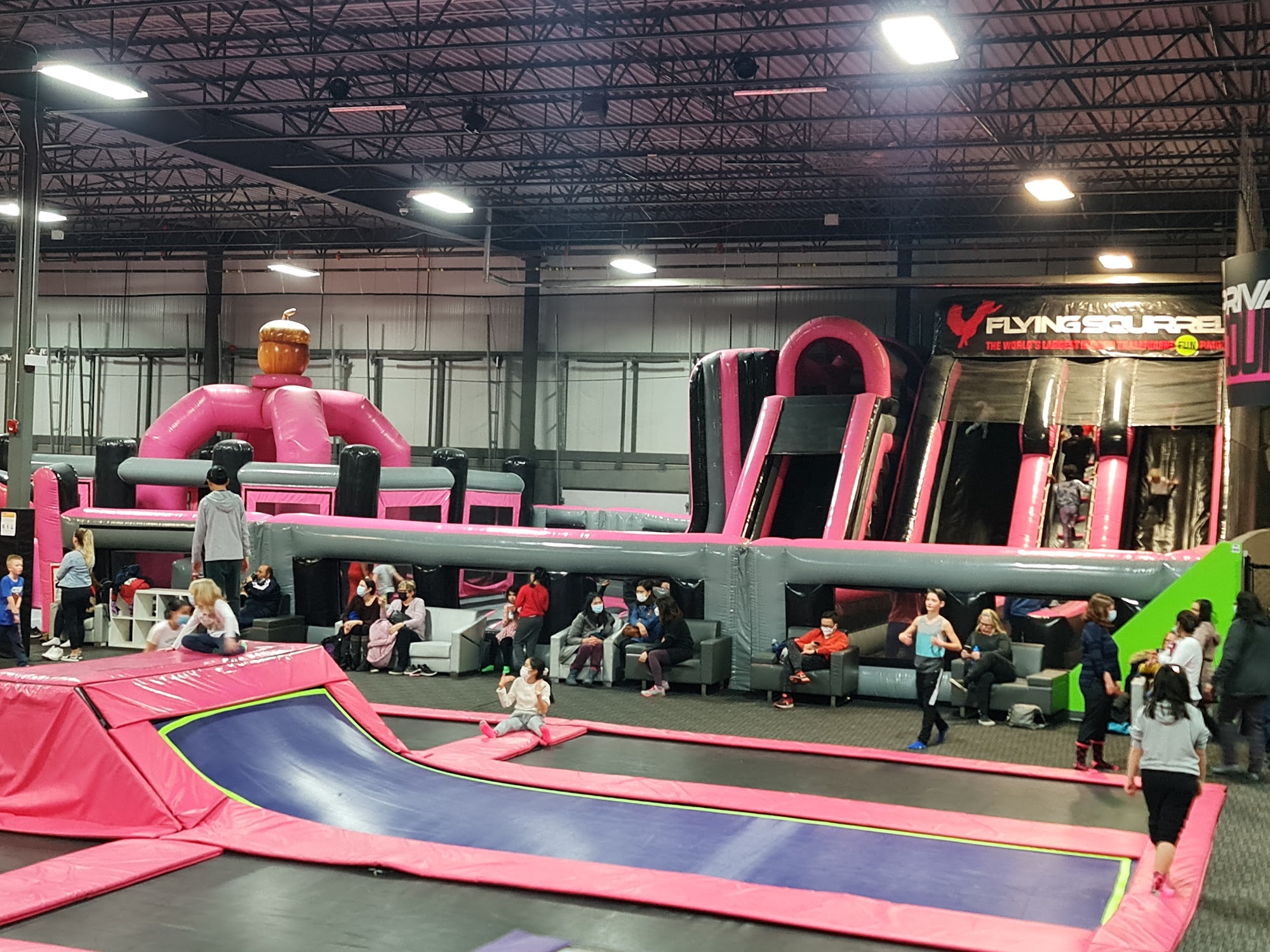 Flying Squirrel Sports in North Calgary, AB, is a thrilling indoor trampoline park that offers endless fun for all ages. Packed with exciting activities, from intense dodgeball matches and slam dunk zones to breathtaking aerial stunts, the venue caters to both adventurous souls and those seeking family-friendly entertainment. When it's time for a break, visitors can relax at the Drey Bar & Cafe or enjoy free WiFi in the lounge. The space is spacious, with well-maintained trampoline equipment, although the foam pit area could use some attention. Reviewers praise the attentive staff, who ensure a seamless experience, especially during birthday parties. However, some noted concerns about the music selection, which included explicit songs, and the potential for overcrowding, which could compromise the cleanliness of the facility. Overall, Flying Squirrel Sports provides an unforgettable experience, with visitors highlighting the fun, energetic atmosphere and the sheer joy of letting loose on the trampolines. Whether you're looking for a thrilling adventure or a day of family bonding, this indoor park is the perfect destination to soar into fun.