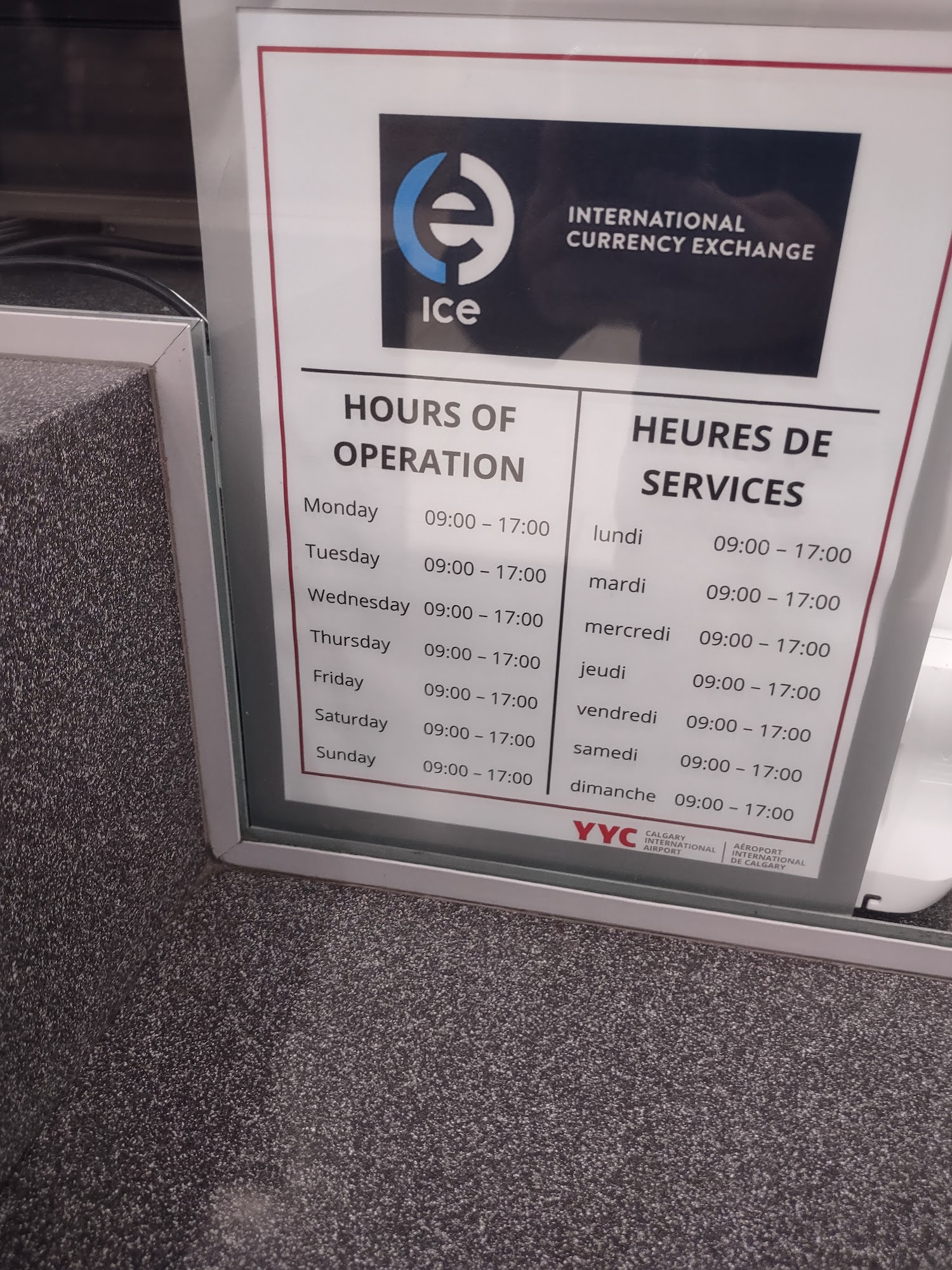 Wow DO NOT exchange your money here what a rip off!!!! It cost me $40.00 more at a sell rate of 1.609059 than to exchange it at my own bank. DO NOT THINK you’re paying a bit more to do it at the airport it’s DISGUSTING!!! It cost me 321.80 Canadian to get $200.00 USD SHAMEFUL!!!